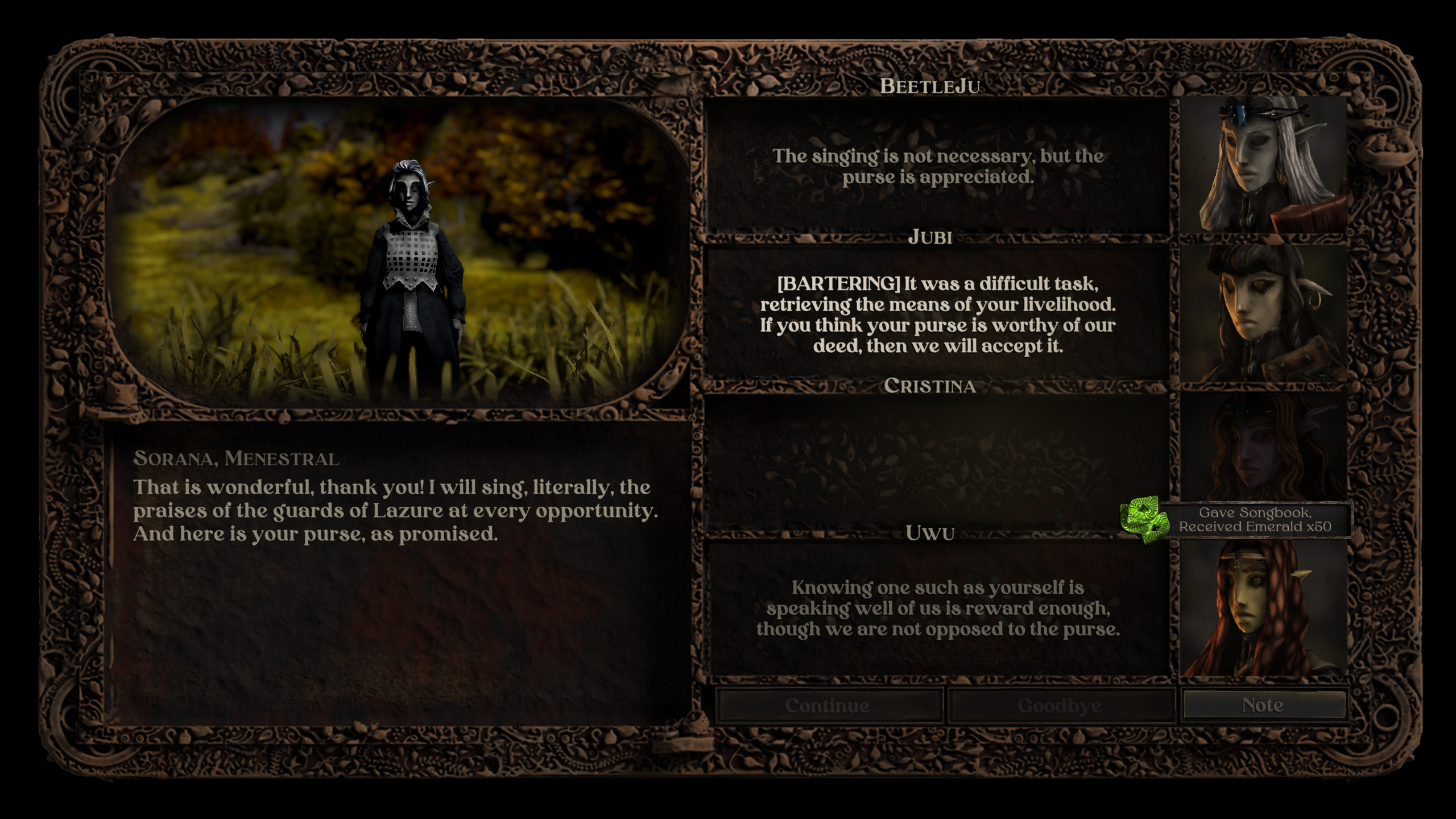 Здесь, как и во многих олдскульных CRPG, нет указателей — нужно полагаться только на квестодателей и внимательно читать диалоги. Усложняется задача тем, что в Banquet for Fools отсутствует журнал заданий и приходится вести записи самостоятельно. Вдобавок игра настолько непопулярная и нишевая, что в Сети до сих пор нет нормальных гайдов. Проворонил описание квеста или не записал его — слоняйся по миру и вини только себя.