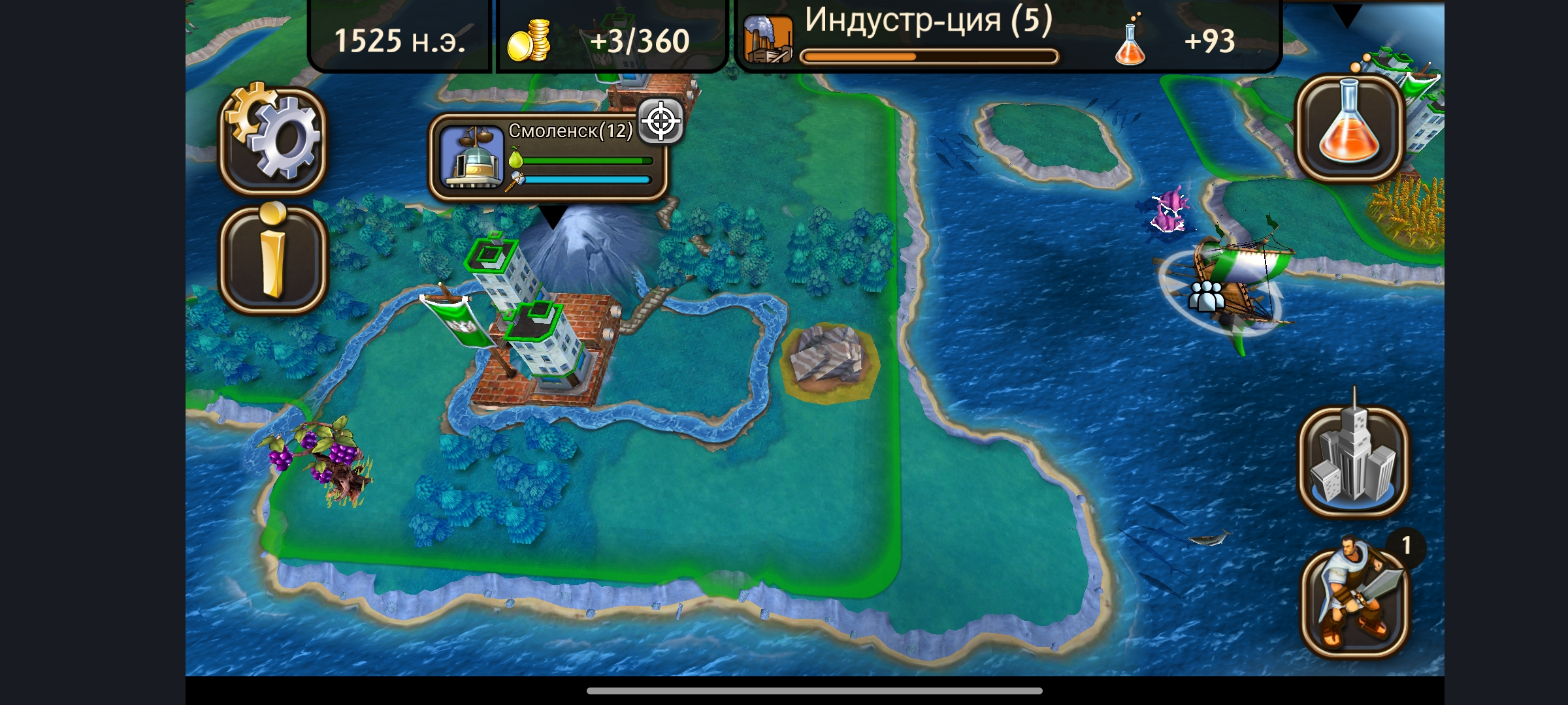 Игровой процесс максимально прост и понятен. Формула Civilization была упрощена до минимума, но увлекательность геймлея никуда не делась. Основной каркас на месте. В начале доступны отряды поселенцев и воинов. Первыми основываем город, вторые защищают и исследуют территорию. Изучаем новые технологии, встречаем другие государства, параллельно устанавливаем дипломатические связи. Развитие городов, бои, редкие ресурсы, торговля, настроение тоже присутствуют.