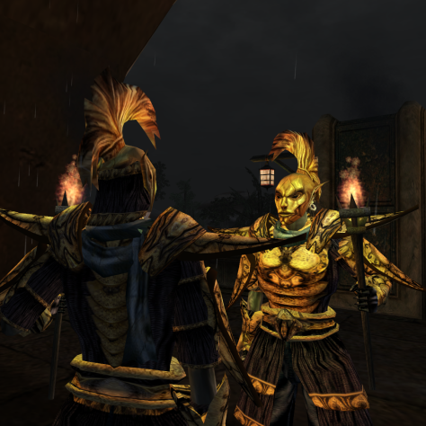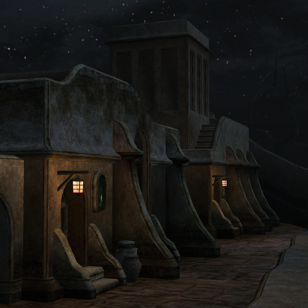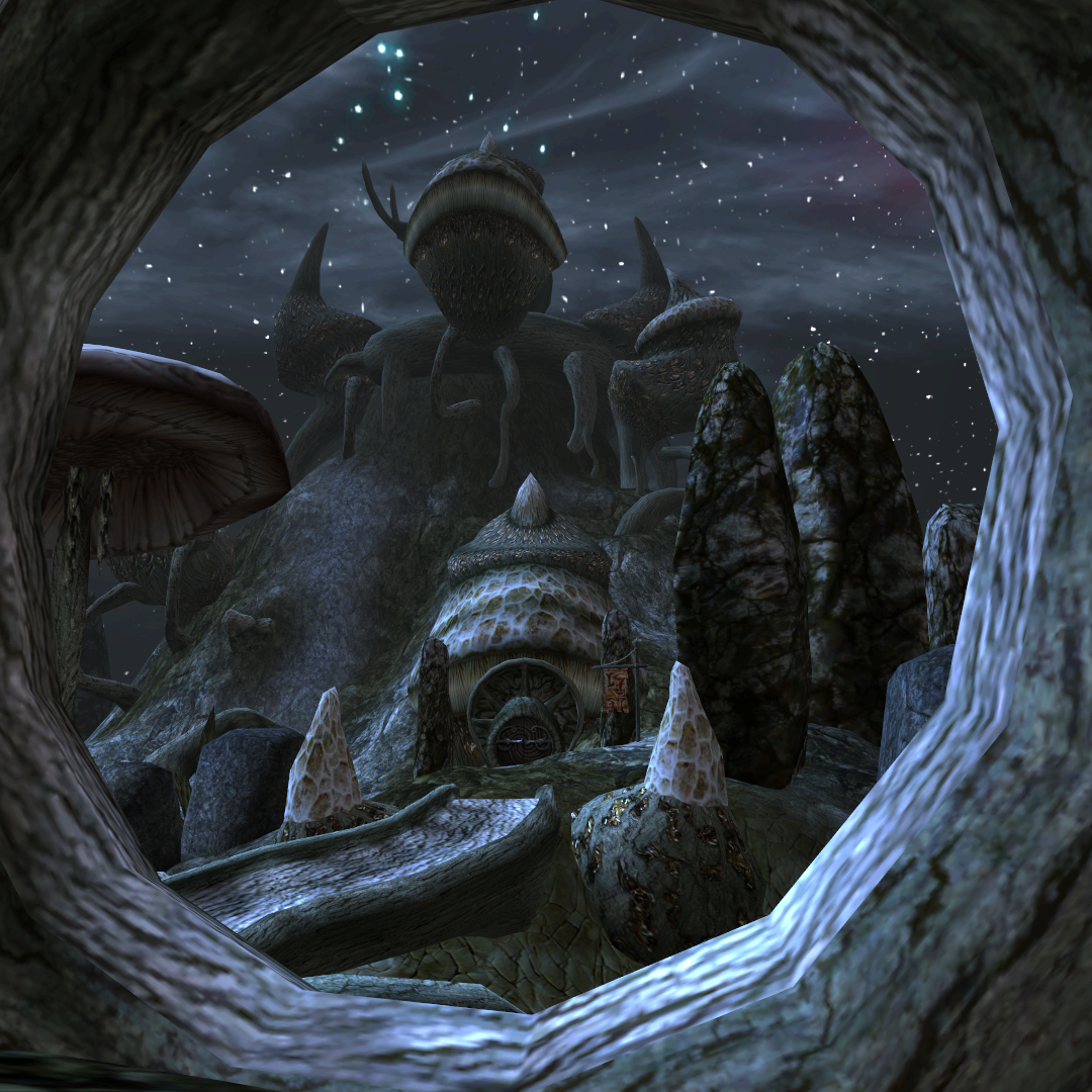 В некоторых своих скриншотах я пытался передать ощущения от первого посещения знаковых мест, встреч со знаковыми персонажами. От Джиуба, который будит главного героя в трюме Имперского корабля, до призрака Азуры, которая дарит Нереварину кольцо по завершении основного квеста. От Министерства Правды, величественно нависающего над Храмовым кварталом Вивека, до деревни скаалов, куда главный герой попадает только в дополнении Bloodmoon.