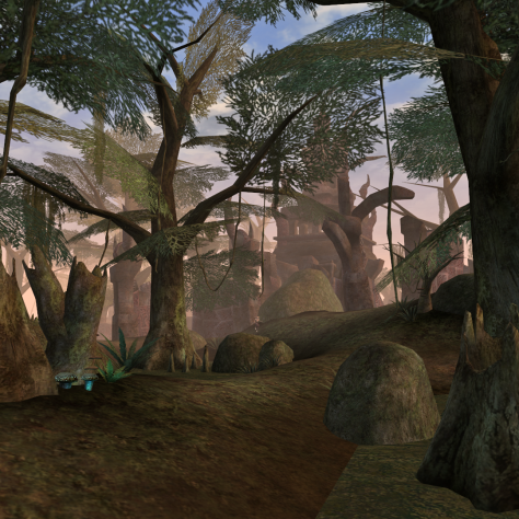 Но разработчики Morrowind пошли другим путём, и в итоге туман превратился в достоинство игры. Он делит картинку на планы: дальний, средний, ближний, окутывает всё окружающее пространство, делая поиски нужного места интереснее, а само путешествие загадочнее. Завораживает сама смена планов по мере путешествия, появляющиеся из тумана и исчезающие в нём странные формы деревьев, грибов, камней, городов и руин.