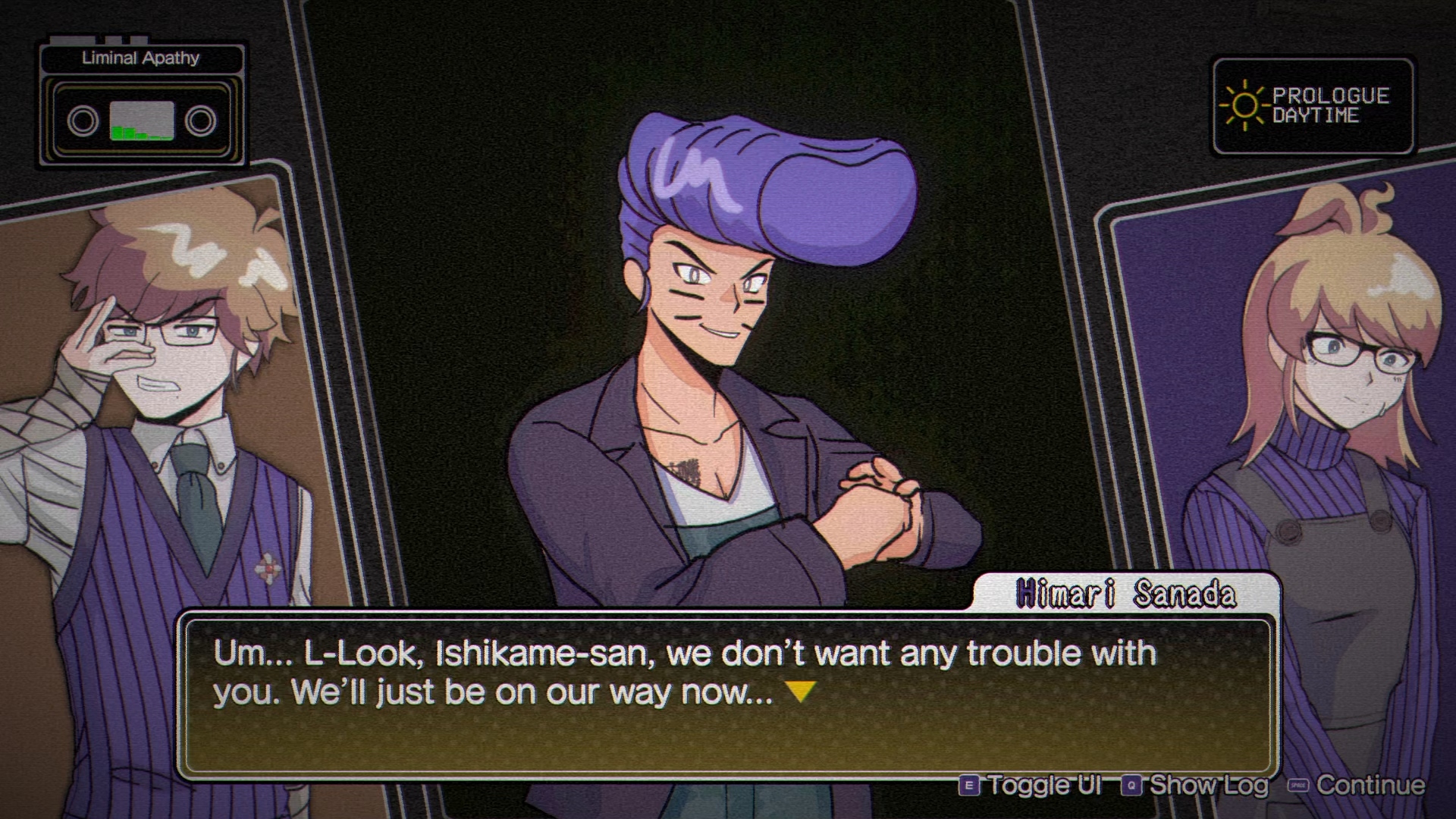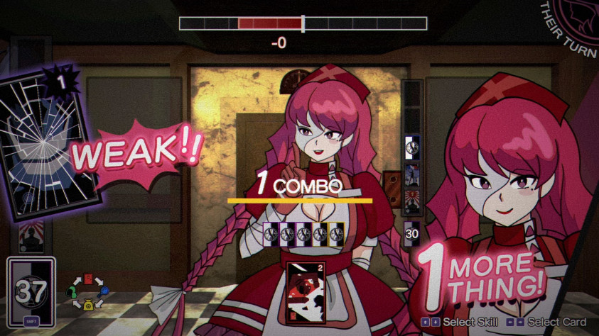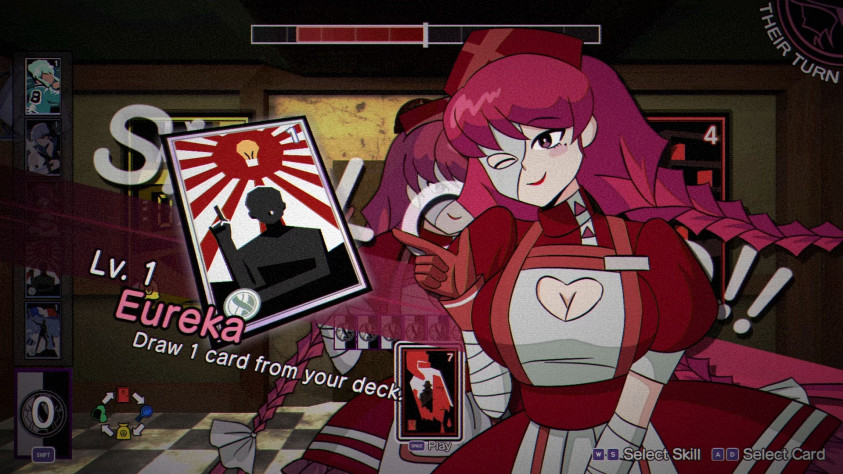 И когда дело дошло до… ну… скажем, «боевой системы», в Kumitantei внезапно проросло зернышко оригинальности. Ведь чем завершалось расследование очередного убийства в Danganronpa? Бешеными в своей динамике дебатами, в которых каждый довод, каждый контраргумент обретал геймплейную роль и требовал максимального вовлечения игрока в писанину на экране. Авторы игры-подражателя пошли к той же цели, но другим путём: вот вам колода дебатов, разворачивайте беседу посредством карточной дуэли! И тут я такой: «HOLD IT!», потому что буквально в прошлом SAGE щупал демку Reality Layer Zero, где была та же идея карточных дебатов. Совпадение?! Ну вообще да, скорее всего и правда совпадение…