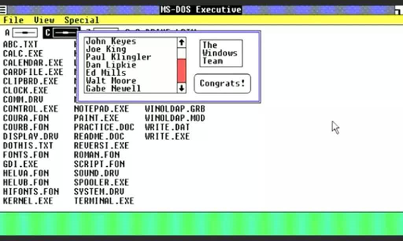 Так же и Microsoft решили не отставать и начали добавлять в свою операционную систему Windows множество секретных функций. Одна из таких это список имен разработчиков Windows 1.0. Кстати там же засветился Гейб Ньюэлл — основатель Valve.