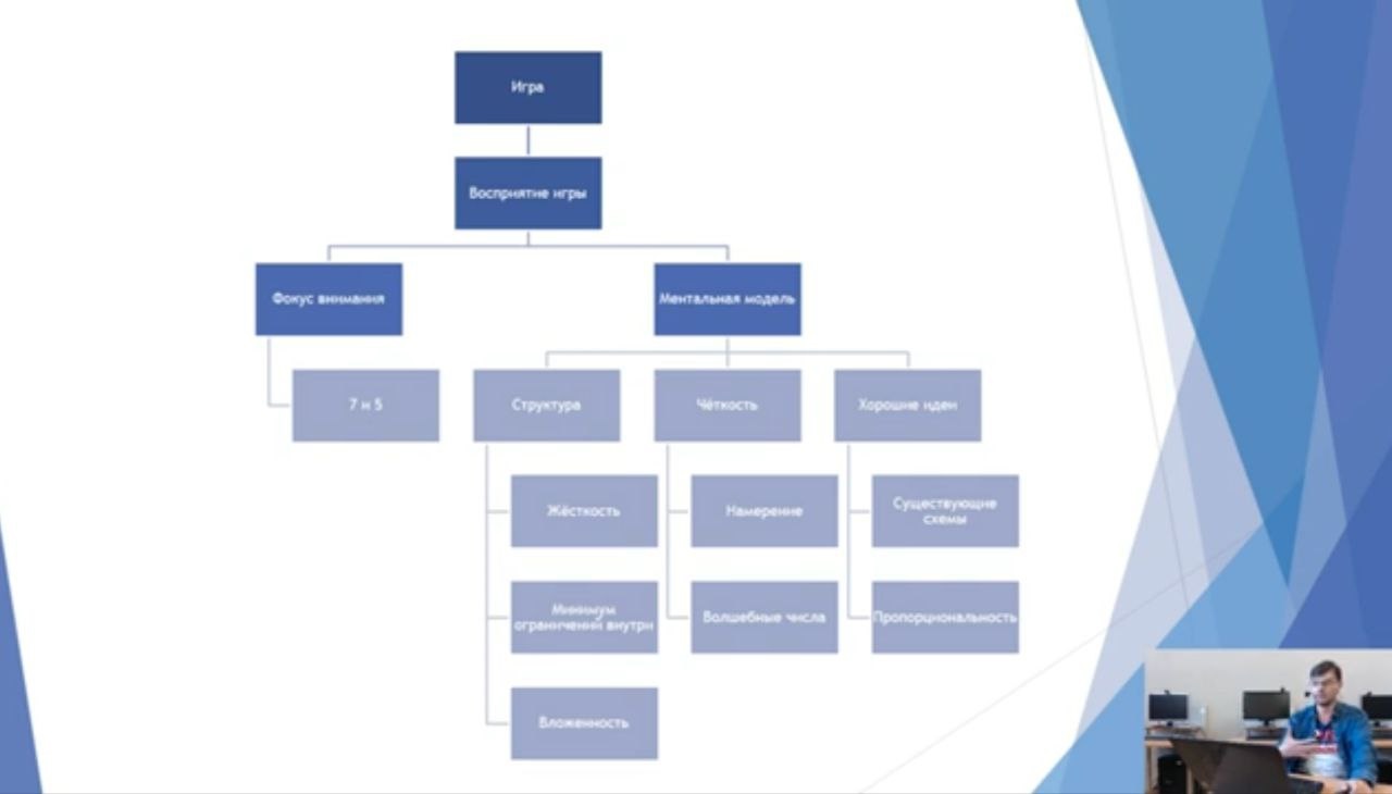 - Вложность. Если схема сложная, то тогда объединяем элементы в небольшое число категорий. Игрок всё не запомнит, но через группу вспомнит необходимое. Игрок иногда сосредотачивается на одной группе и не обращает внимания на другие. Например, профессиональные игроки в Старкрафт знают на 100% свою расу, но остальные расы знают через свою. Как за зергов бороться с тактикой терранов. Это помогает в сложной игре не запоминать полностью все сотни нюансов.