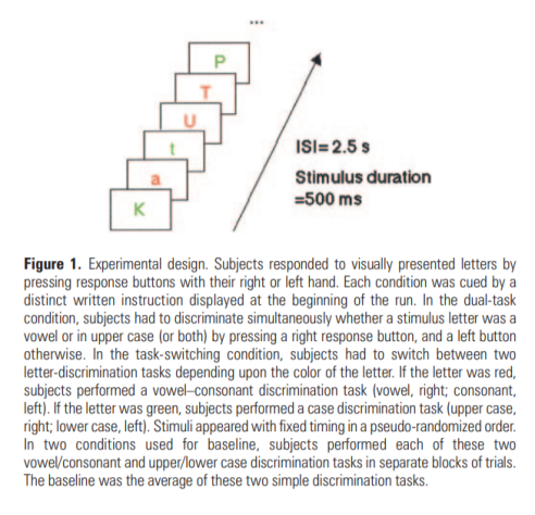 Участники эксперимента, которые определяли, буква заглавная или строчная и гласная и согласная выполняли, задание дольше, чем те кто выполнял одну задачу.