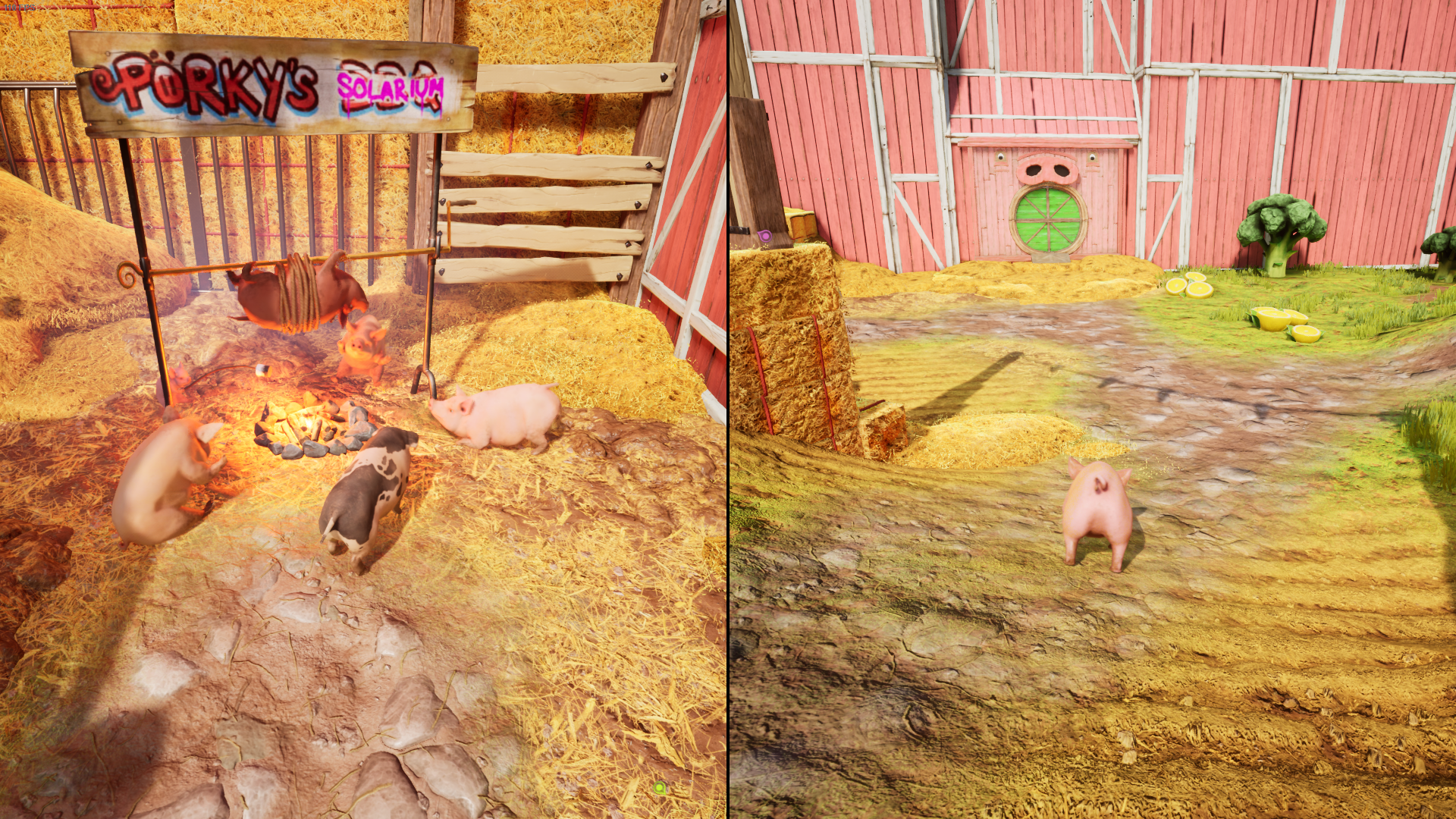 В детской истории Зои нам придется побегать в теле милых свинюшек по ферме. В ней достаточно смешных отсылок и активностей. Как и в обычных главах у каждой свои особенности, которые помогут найти по яблоку для прохождения дальше, а финал оказался очень неожиданным.