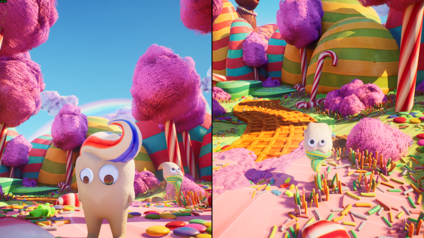 У Мио более типичная история для всех детей (боязнь стоматологов), но реализована она шикарно. В ней под нашим управлением будут зубы в мире различных сладостей.