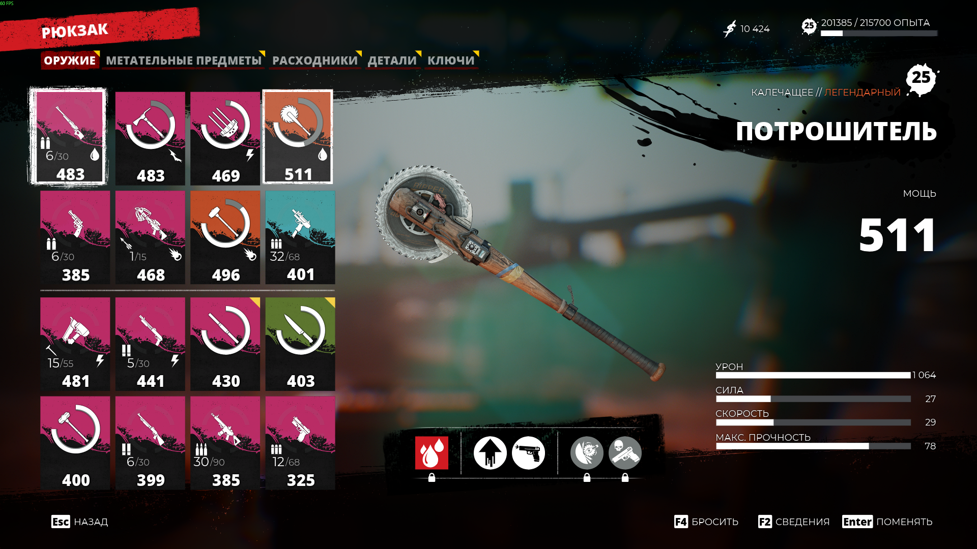 Инвентарь достаточно разнообразный. Самое нетипичное решение — приманки, метательные инструменты не имеют ограничения по количеству, их не нужно крафтить — они бесконечные, но имеют время перезарядки.