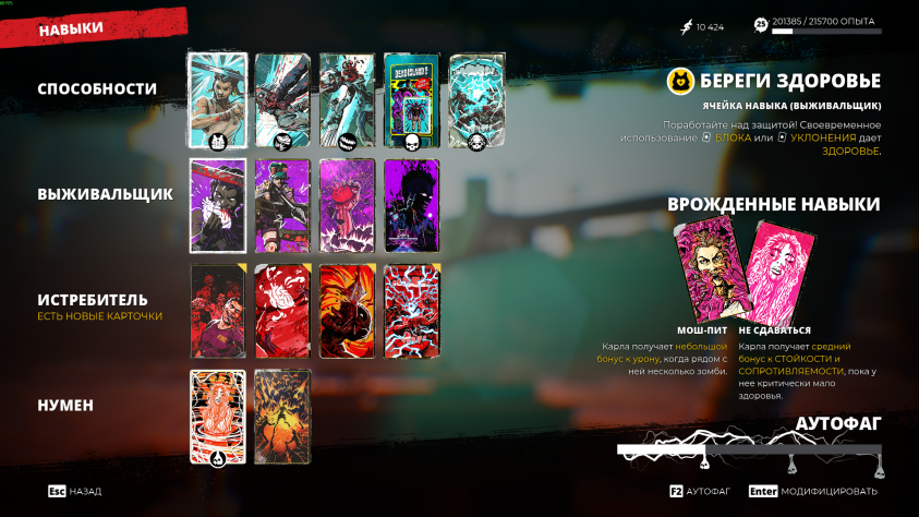 Прокачка состоит из колоды карт, что достаточно необычно выглядит, хоть и было что-то подобное в back 4 blood. Карты предлагают различные пассивные и активные способности, которые позволят усилить свой стиль игры (каждый персонаж по разному справляется с ордой, кто-то через блокирования, кто-то через уклонения и тд).