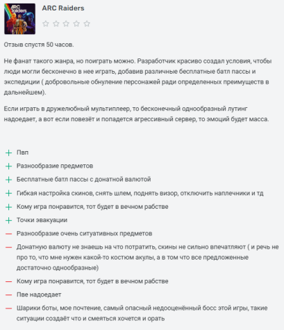 Лучшая мультиплеерная игра по версии TGA 2025, которая вызывает у меня двоякие чувства. Я не фанат такого жанра, был когда-то мизерный опыт в PUBG, но этого десятка часов хватило понять, что жанр не мой. А в raiders затащили друзья, но по нашей разнице в наигранных часах (у них на 100+ больше) можно понять, что меня не сильно впечатлило. Чего-то не хватает, а вот чего именно не понимаю. Суть игры в том, что в каждом матче мы выходим на карту и лутаемся, среди врагов не только другие игроки, но и роботы. Все найденное теряется, если умереть. Данный подход должен заставлять — дорожить своим инвентарем. Но почему-то этого не происходит. Дорогие предметы ни раз терялись мной, как и снова приобретались в других матчах. Если удача не на нашей стороне, то есть торговцы, которые с радостью предоставят предмет за определенное вознаграждение.