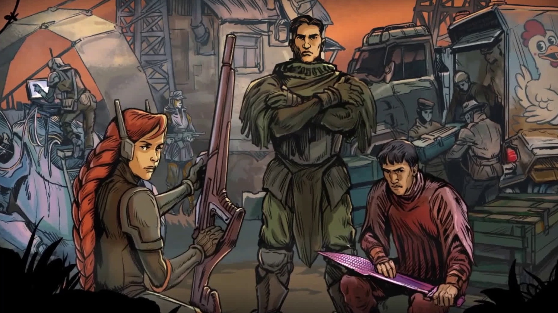 Мир Synchro это мрачное представление будущего, где победили технократы. Общество живет в ограниченных рамках, скатившись на уровень примитивных развлечений и не брезгующих баловаться запрещенными веществами. Роботы полностью вытеснили людей с рынка труда и теперь трущобы населяют безработные люди, которые потеряли последние средства для существования. За порядком также следят роботы, которые не упустят возможности применить силу, если человек откажется им подчиниться. Именно в условиях хаоса и разрухи будет развиваться история команды наемников, которые решили стать во главе сопротивления, чтобы уничтожить алчную корпорацию и подарить людям свободу. Жаль что никто не сказал нашим героям, что победа не достанется им простым путем.