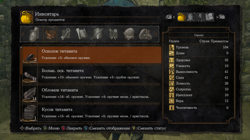 Такого обилия кузнечных камней я никогда не видел. Я даже не пытался запомнить какой и для чего нужен. Просто собираешь все, потом разберёшься. Жалко, что все оружие с боссов в основном с упором на ловкость, а я прокачивал силу и грустил из-за отсутствия перераспределения характеристик.