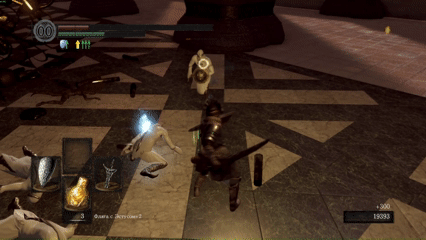 Наиболее запоминающимися оказались Присцилла (ее найти то еще испытание), Гвиндолин, Сиф и Четыре короля. Присцилла удивила своей невидимостью во время сражения, искать босса по шагам на арене было интересно. Гвиндолин предлагает очень нетипичное сражение в длинном коридоре с постоянно убегающим боссом. Собака с мечом первый динамичный босс, которого я увидел, возможно из-за этого запомнился. А четыре короля сражаются в абсолютной темноте. Я так и не понял какие размеры у арены, но удивился когда увидел еле-еле заметный костёр на горизонте.