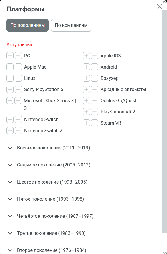 Играм вышедшим на специфических устройствах, аддонах ставьте название самого устройства, а не базовой платформы. Например Sega CD, а не Sega Mega Drive. VR играм в платформах ставьте конкретное VR-устройство. Если вышло в стиме значит Steam VR или Oculus, на PS4 будет PS VR, на PS5 это PS VR2.