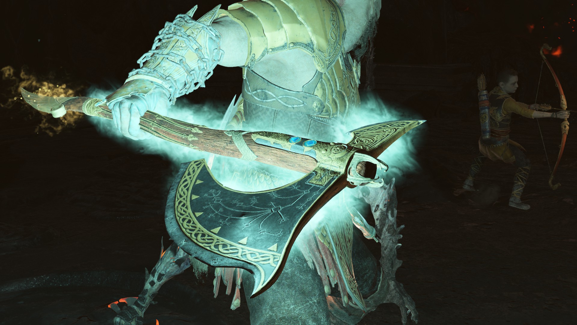 Вплоть до финала Атрей одевается в то, во что придется. Денег на покупку его одежды редко хватает. Зато в эндгейме открываются 2 брони, и каждая исполняет отдельную функцию. Одна усиливает урон и скорость атак, другая дает ему возможность лечить отца. Это полноценная кастомизация спутника, меняющая его полезность в бою. Определенно стоит иметь оба набора в запасе