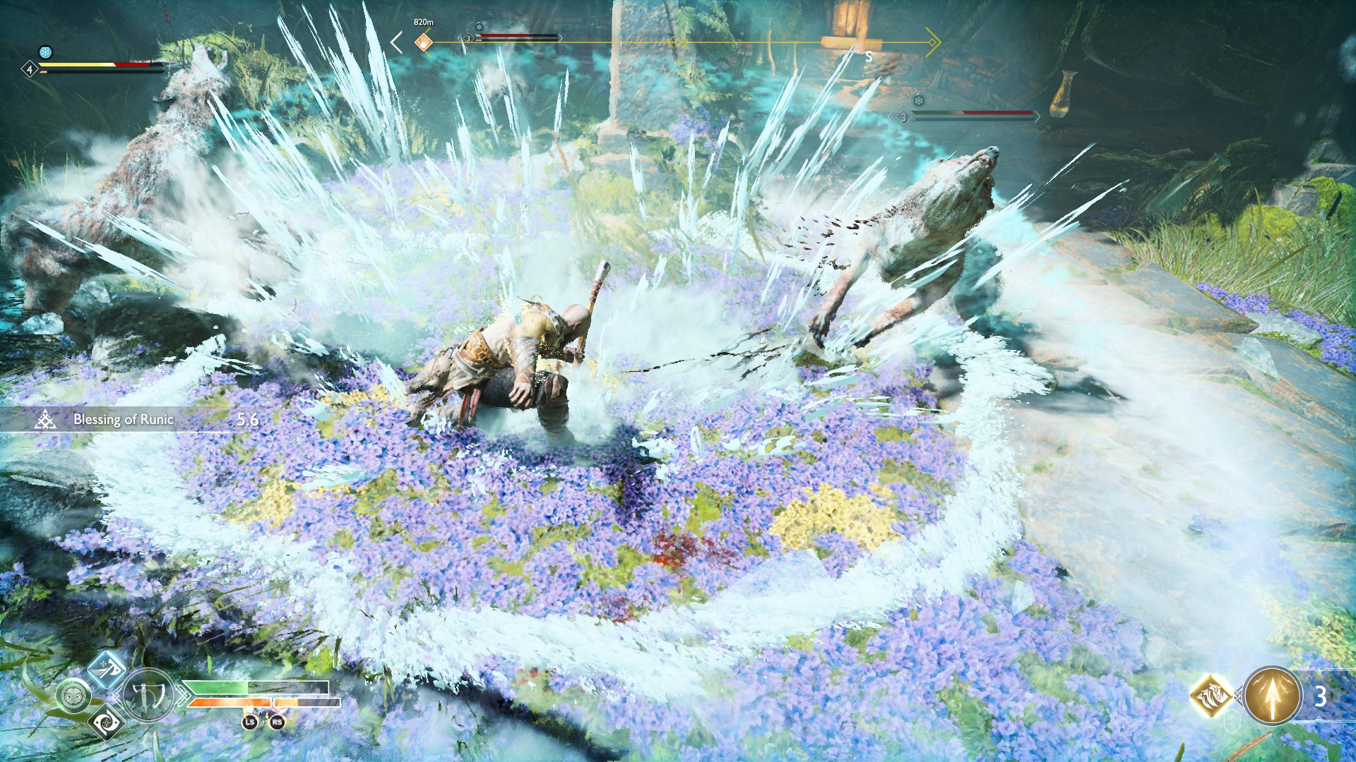 Имеется некоторая кастомизация боевки за счет рунических атак. Эти спец-удары удается редко найти в сундуках, и они дополняют мощь игрока. Обычные комбо бьют впереди Кратоса на некоторую дистанцию, а руническая атака может как вокруг по площади ударить, так и стрелять вдаль. Парочка дополняет арсенал рывком, которого иногда не хватает. Есть руническая атака – можешь использовать ее без ограничений после *много* секунд перезарядки