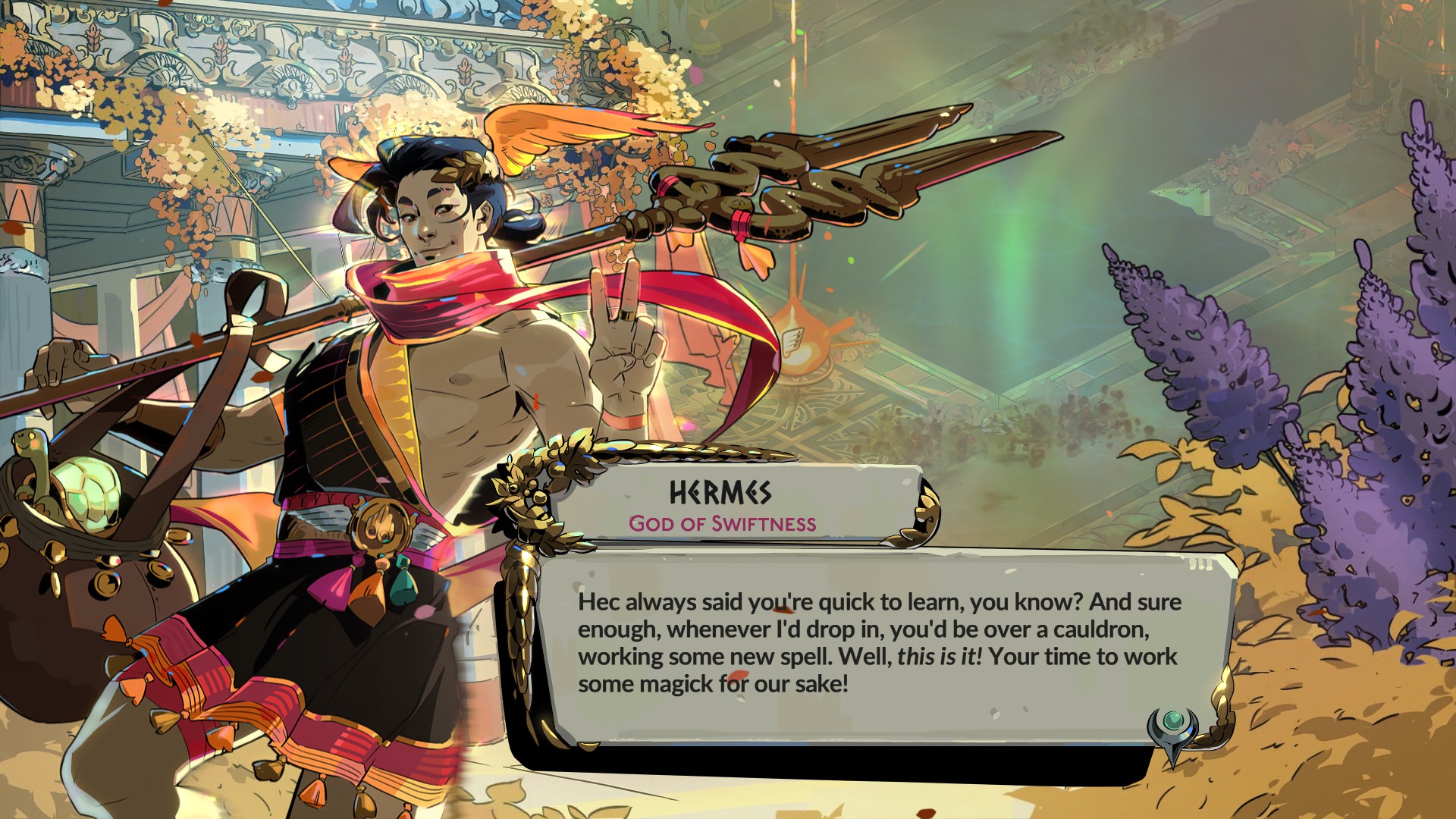 Несмотря на расхождения от мифологии, Supergiant Games адаптирует самые мелкие детали. В википедии про Гермеса вот что говорят: «бог торговли и счастливого случая, хитрости и воровства, юношества и красноречия; покровитель глашатаев, послов, пастухов, путников; посланник богов и проводник душ умерших». Он не просто бог скорости. Вся эта многогранность отражена в Hades 1 и 2! Его дары отделены от остальных олимпийцев, на поверхности у него собственные магазинчики с доставкой товаров, он коллега лодочника Харона, верность Гермеса равна между Зевсом и Аидом (если не склоняется в сторону Аида)