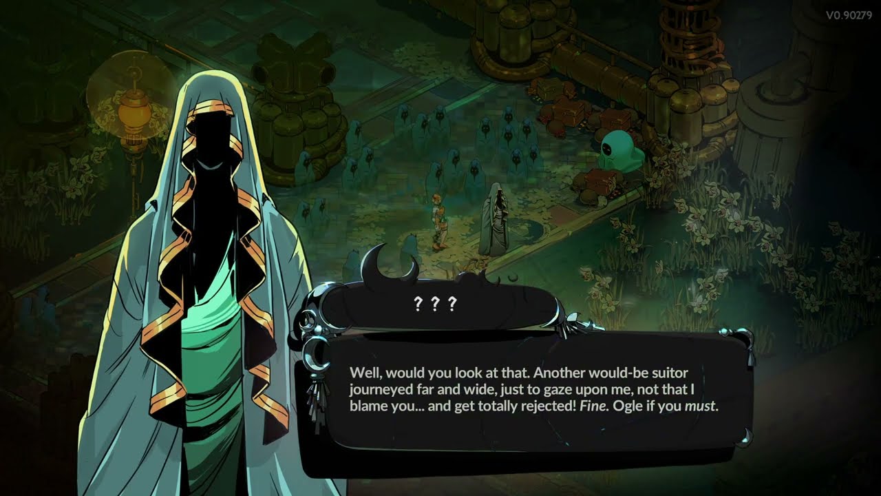 Также сюда можно сгруппировать развитие отношений с сопартийцами и их важность для истории. Вернее, их отсутствие. Приятно заводить романы с товарищами-богами, но они оказываются нужны только для романов. Морос помогает в самом начале игры, а далее просто стоит рядом со списком малых пророчеств как истукан. Особенно мне обидно за Немезиду, чье состязание с Мелиноей за шанс убить Кроноса не получило значимое развитие. Даже после концовки она продолжает лезть вниз с той же мотивацией, хотя «смерть Кроноса» исполнена. Ее ближайший аналог в оригинале, Танатос, гораздо лучше воплощает архетип «цундере». Выходит, что среди Незримых только Мелиноя и Геката – важные члены, а остальные служат декорацией. Эта проблема относится к концовке, потому что становится явной только после нескольких забегов в новом-старом статус-кво. Персонажам вместо написания нового материала переиначили старый