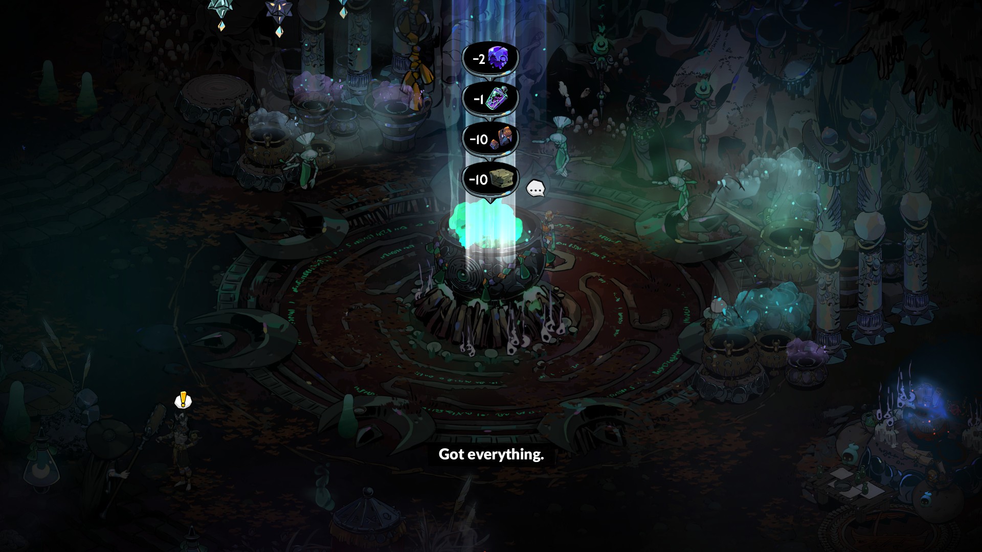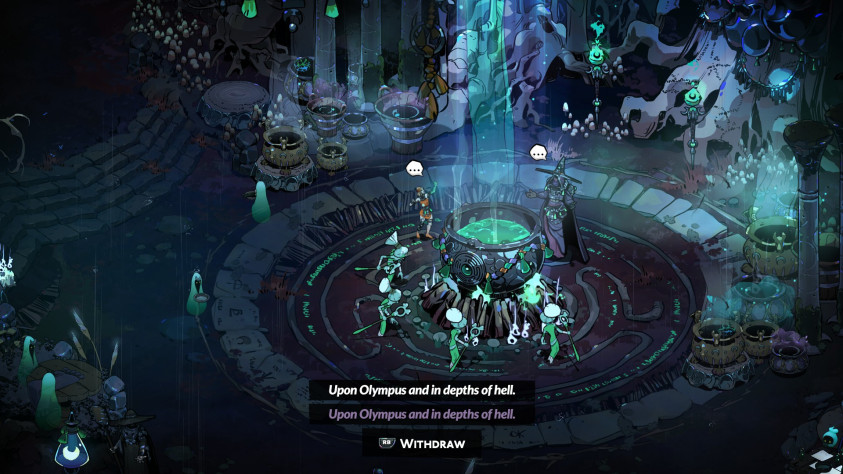 Котел всесилен, но не всевластен. Для правильного заклинания надо подобрать нужные слова и реагенты. О первом позаботятся умы персонажей и сценариста, а на игроке ответственность за сбор всего не прибитого к полу. На каждом этаже Hades 2 свой тип трав, ростков, корешков и камешков. Чем больше у вас штуковин, тем больше магической власти. В Hades 1 заметно меньше видов валюты, хотя они не слишком сильно проигрывают во взаимосвязи