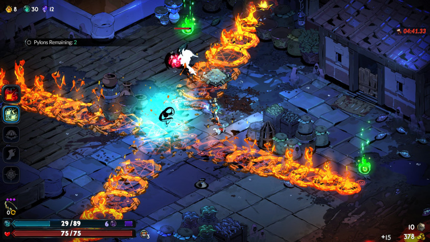 Каст изменился радикально. В арсенале сына Аида это был единственный универсальный метод дальнего боя. Парень метал камешек, наносил чуток урона и бежал подбирать его перед повторным броском. Я постоянно забывал о его существовании ввиду бесполезности. На контрасте дочь Аида ставит ведьмин круг, который замораживает врагов вблизи на месте. Сперва не понимаешь, зачем он нужен, а потом встречаешь толпы быстрых и наглых врагов, которые никак от тебя не отстанут. Каст стал методом контроля арены, который может нанести нехилый урон при должном даре. Лучшие билды обязательно используют его для достижения пика мощи