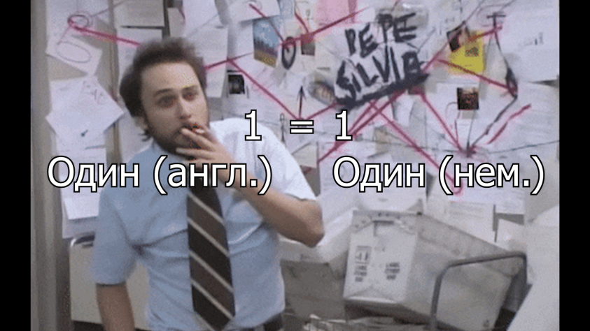 Берём второе слово у Худед Вана — «One» — и видим, что это «один» на английском! Один и один! M?
