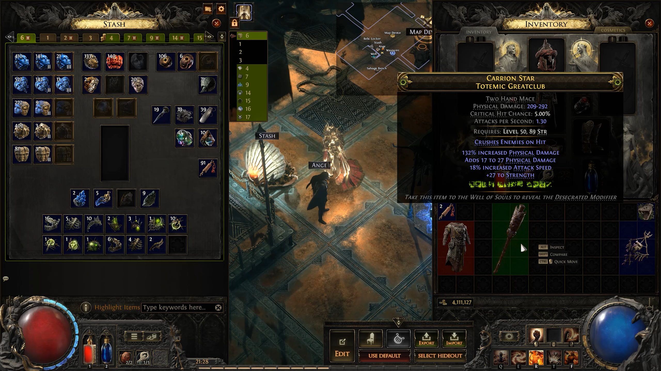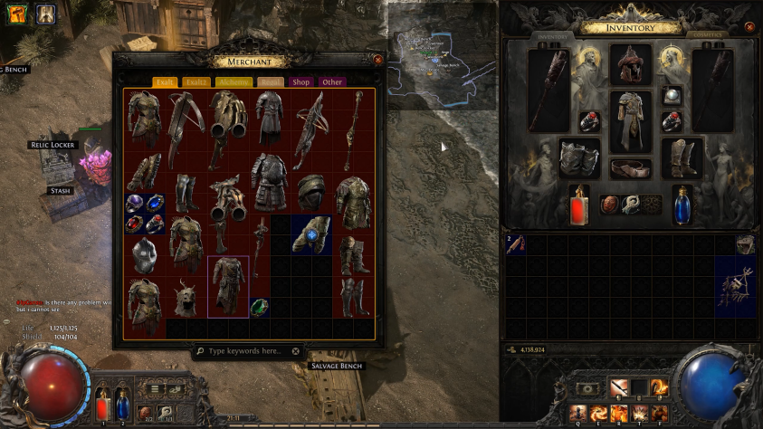 В игре есть разные типы предметов — валюта, скиллгемы, ессенции, карты и т.д. Изначально у тебя в сундуке, кажется, 4 вкладки, в которые ты можешь пихать всё, что угодно.