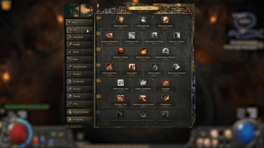 В ПОЕ2 все скиллы сгруппированы в одном месте и ты можешь в любой момент взять любой скилл любого класса, предварительно прямо в игре посмотрев как он работает. А удобные рекомендации по саппорт гемам к каждому скиллу гарантировано помогут тебе усилить свой билд.