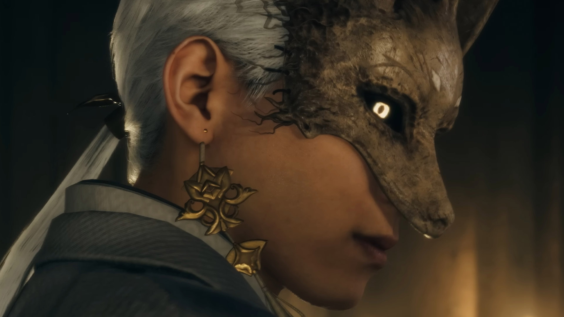 Решив загадку, Хинако встречает и хозяина этой земли - прекрасный юноша, облаченный в чистое белое одеяние, чью верхнюю часть лица скрывает маска лисы. Он проводит Хинако через множества врат тории, держа в руке синий фонарь, ярко сияющий посреди раскинувшейся тьмы. Он учтив, галантен и появился словно из ниоткуда, желая помочь Хинако. Но старая кукла из детства девушки (как она тут оказалась?) предупреждает нацарапанными на камне посланием "не доверять человеку-лису". Спустя очередную загадку, Хинако входит на основную территорию храма, но что-то вновь вырубает её и она теряет сознание.