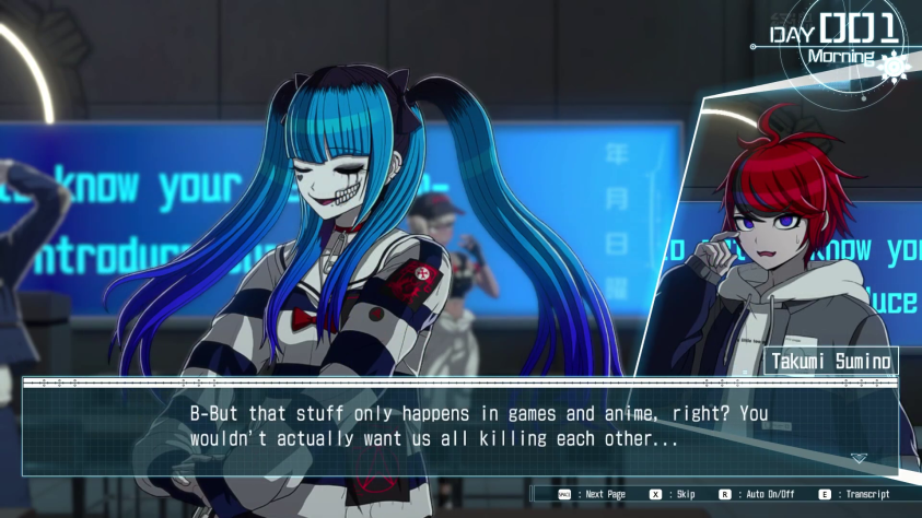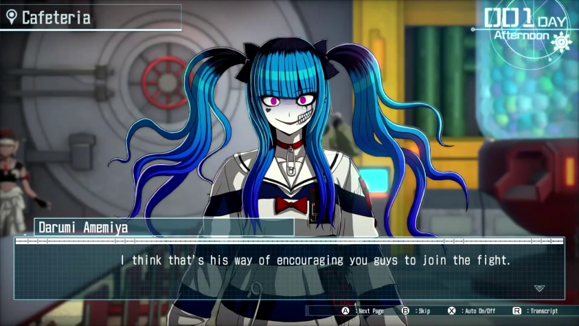 И ты реально по аналогии с Данганронпой, тому какой тут вторичный визуальный стиль начинаешь думать, что по-любому будет убийственная игра. Один из персонажей Даруми (по совместительству ебDLCтая фанатка Данганронпы) прямо провоцирует на это: