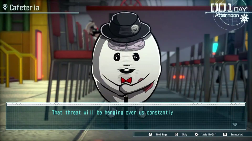 Первое впечатление — максимально странное. Визуально это была просто Данганронпа один в один. Такое ощущение, будто художник нарисовал новых персонажей по шаблону. Еще и вместо культового Монокумы — какое-то яйцо с мозгами. Ну, камон.