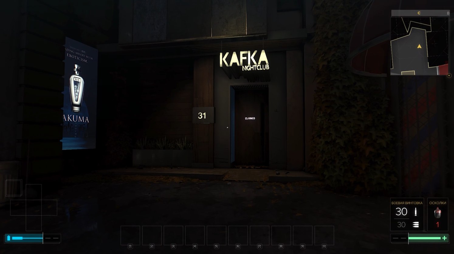 Клинок клинком, но нам надо осмотреть и всё остальное на Площади Мира. Район приличный, относительно не криминальный, но людей в нем маловато. Есть бары, магазины, жилые дома, новая реклама, клуб "Кафка", в который, к сожалению, не зайти.
