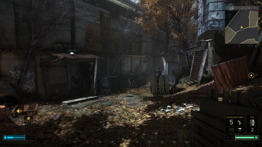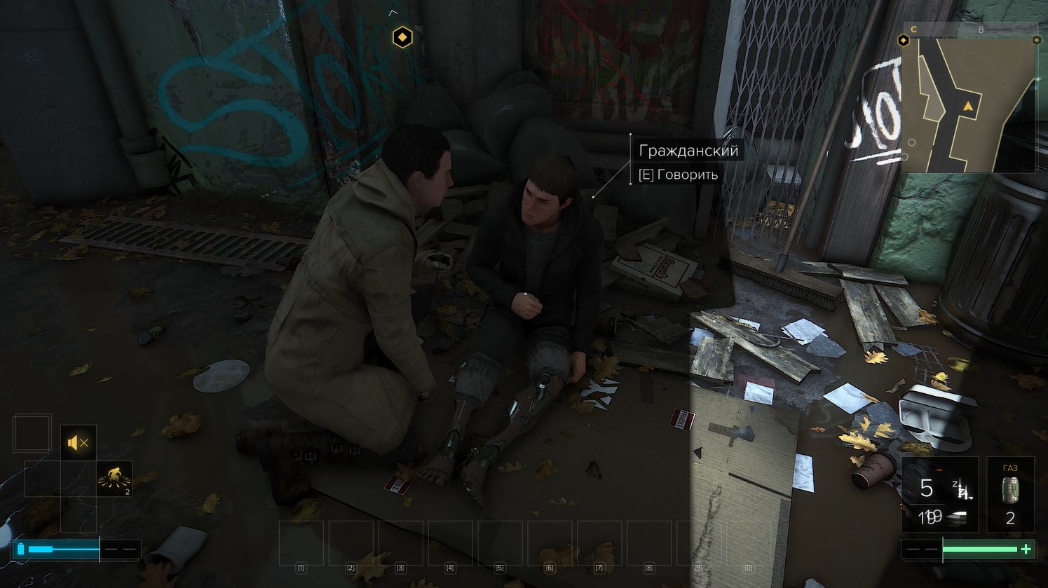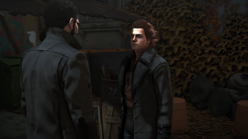Дженсен и впрямь живёт в бомжацком районе. Неудивительно, бедная квартира - бедный район. Мало того, что дома выглядят так будто всем в этом городе уже давно плевать на эту архитектуру, так ещё и бомжи повсюду, а за стеной обнаруживается двор с кучей мусора, горящих бочек и незаконных торговцев.