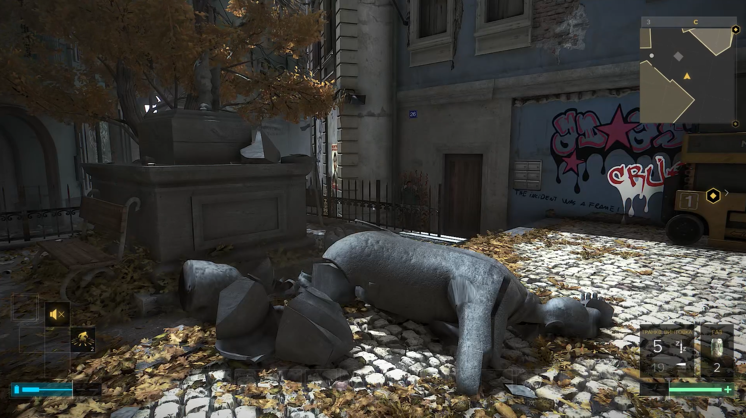 С одной стороны, я ценю усилие разработчиков, они учли, что город меняется со временем. С другой стороны, Ружичка после вот этого дневного квеста никак не связана больше ни с основным сюжетом, ни с дополнительными миссиями. У нас нет ни единой причины сюда возвращаться. Ну только из любопытства, разве что. А значит велики шансы пропустить эту деталь. Надо было как-нибудь минимально увязать эту станцию с какой-нибудь из дополнительных миссий, чтобы игрок сюда точно заглянул, а старания дизайнера не пропали зря.
