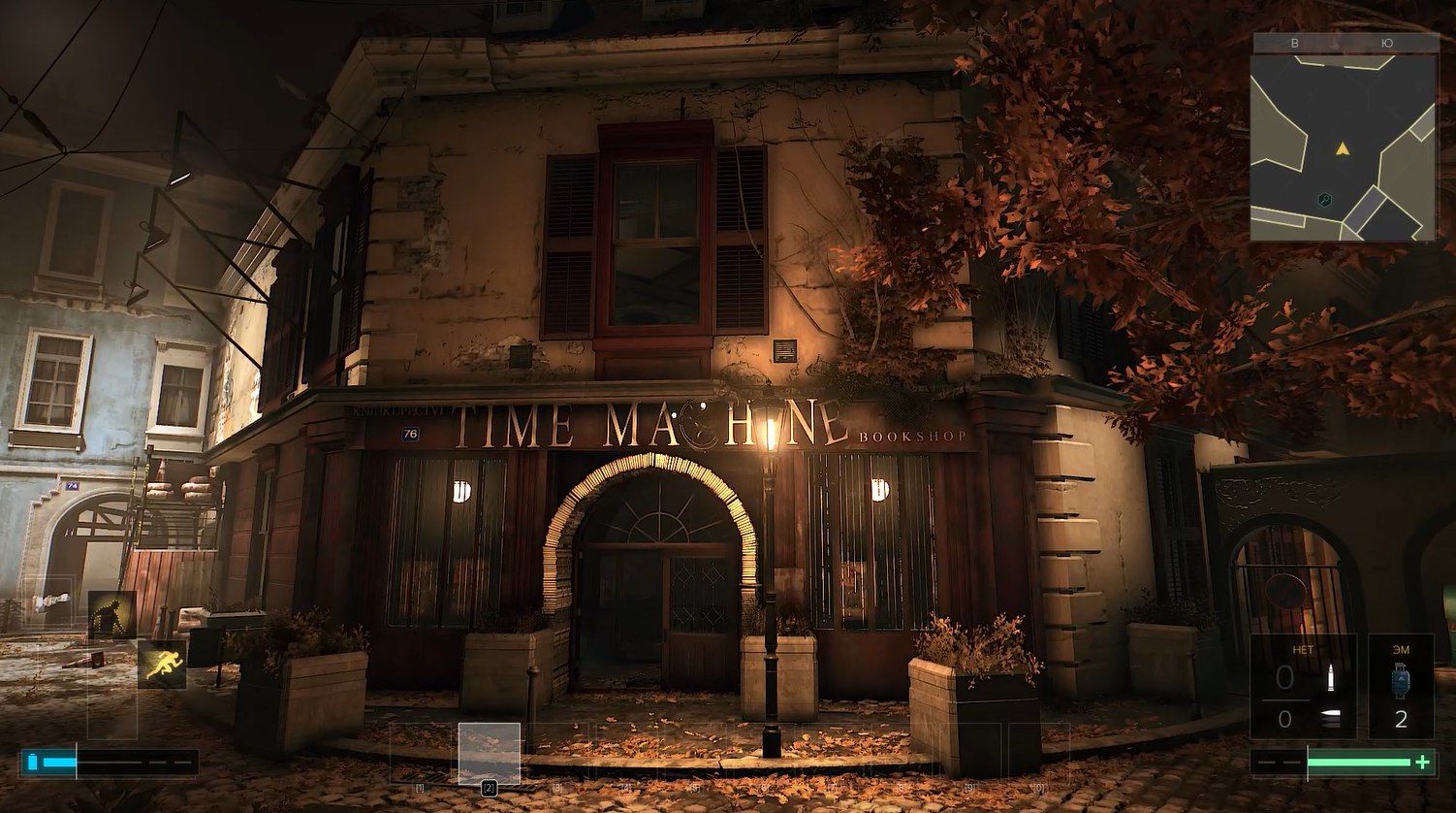 Около книжного магазина больше не тусуются бандиты, а сам книжный магазин может сильно поменяться внешне в зависимости от того, как мы выполнили квест с калибратором. Здание от наших выборов может как остаться целым, так и сгореть (его спалят люди Отара).