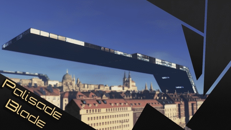 Итак, это клинки банка Палисейд - огромные г-образные конструкции, нависающие над Прагой. Они установлены либо в земле, либо и вовсе прямо в реке.