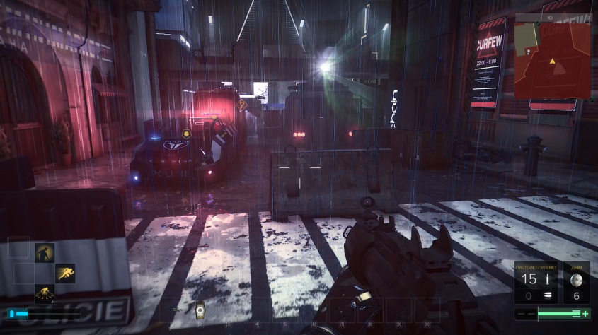По сюжету ночью начинается комендантский час. Улицы наводнены копами и льющейся с неба водой. Если дождь нам не особо мешает, в конце концов, игра киберпанковая, и мы должны где-то прятать свои слезы, то копы немножко мешают туризму, потому что они в нас стреляют без суда и следствия, как бы намекая, что они и закон, и суд присяжных, и исполнители приговора.