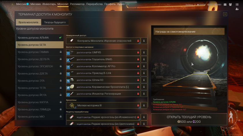 Открывается прокачка Монолита. Она влияет практически на всю базу. Становятся доступны новые рейды, чертежи, оперативники и так далее.