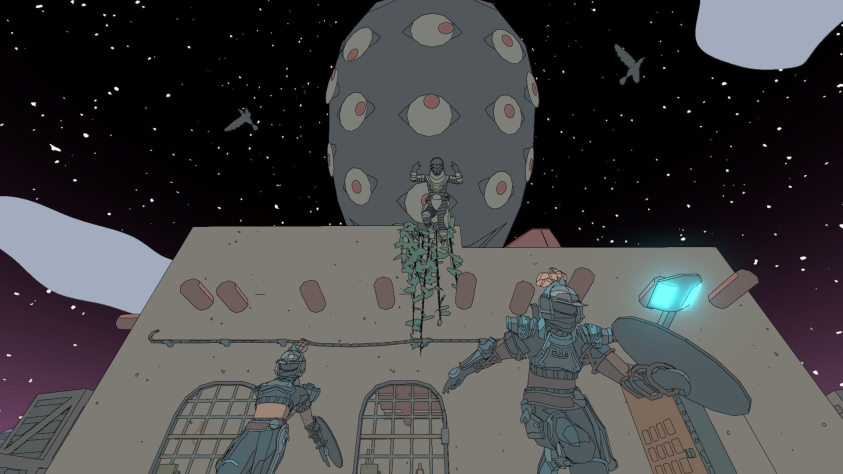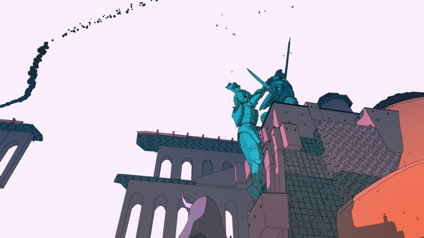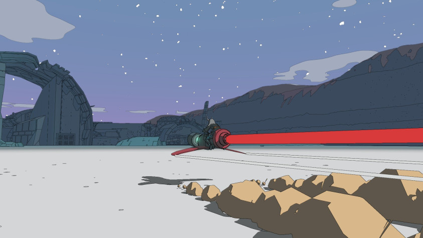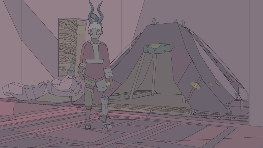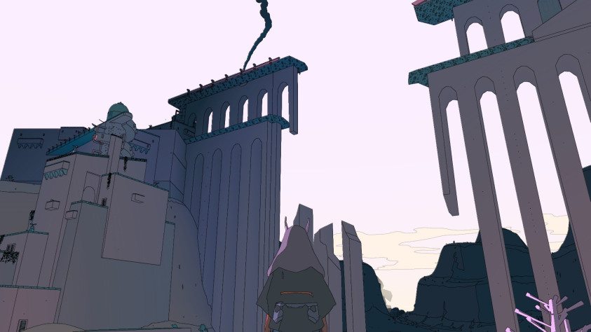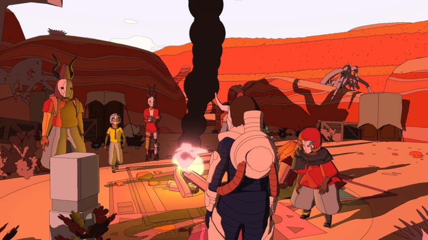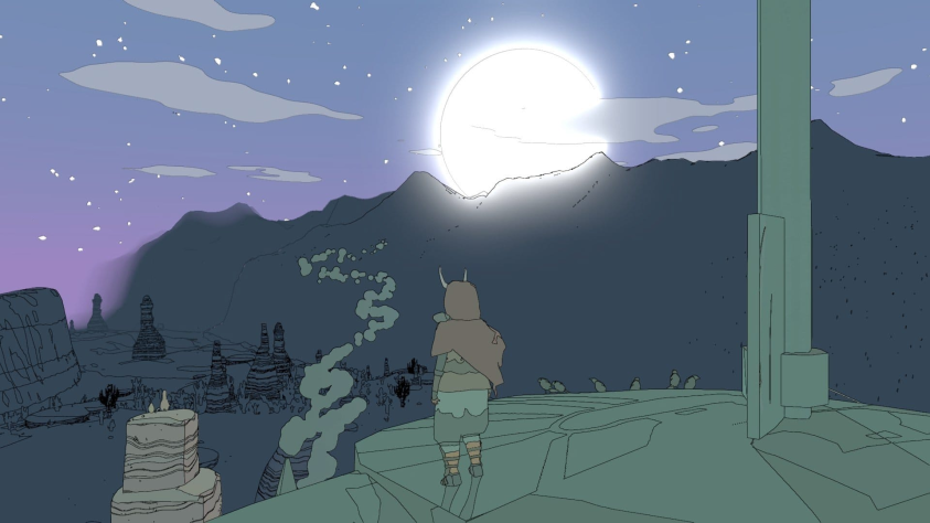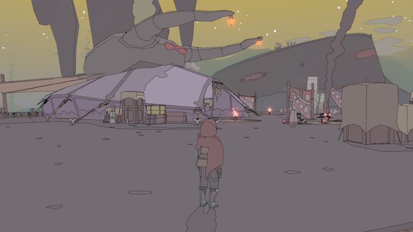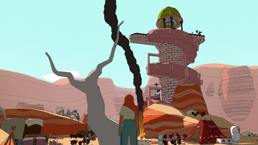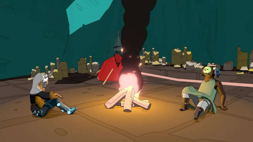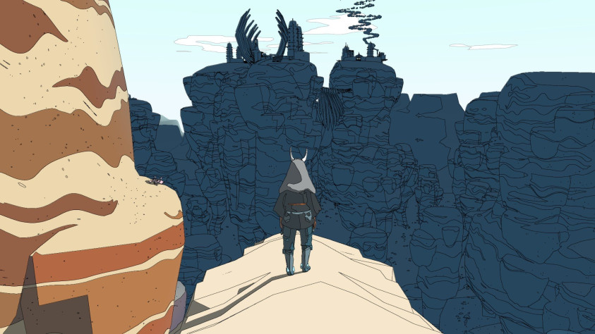 Особенно трогательной и даже печальной для меня показалась сцена, когда Сэйбл прощается с кланом и отправляется в местный храм получить благословение для путешествия. Девушка возвращается на рассвете с новым ховербайком, и вот она видит уже опустевшую стоянку её клана. Все жители покинули свои насесты, и девушка осталась совершенно одна. Можно подумать, что её бросили, заставив принимать тяжёлые решения самостоятельно. Однако это не так. «Козероги» – кочевники по своей природе, они не могут долго оставаться на одном месте. Но нам показали какие крепкие у Сэйбл отношения с кланом, она сможет вернуться к ним, когда почувствует, что её путешествие окончено.