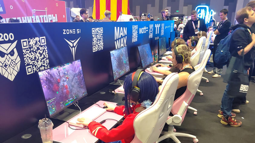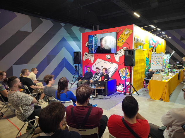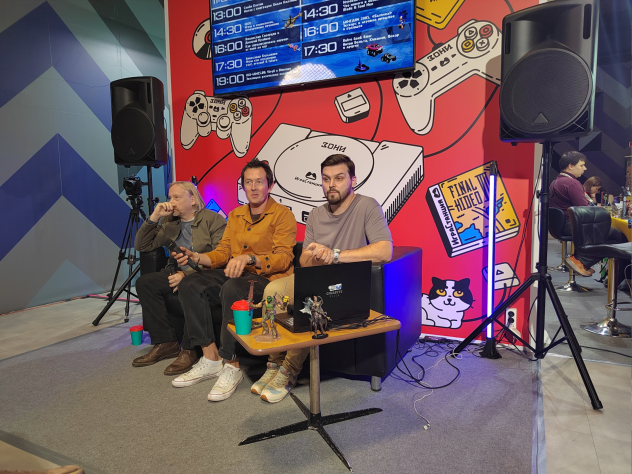 В «Ретро-зоне» обустроили множество игровых мест, начиная от рабочих компьютеров с библиотекой игр начала нулевых, заканчивая аркадными автоматами с играми под ретро и даже стендом со смартфонами iQOO, на которых были запущены мобильные версии классики вроде Max Payne и Disco Elysium. А ещё там был отдельный стенд, где приглашённые авторы перспективных проектов, находящихся сейчас в разработке, рассказывали о своих играх и планах на будущее. После каждого выступления этим авторам можно ещё было задавать вопросы.