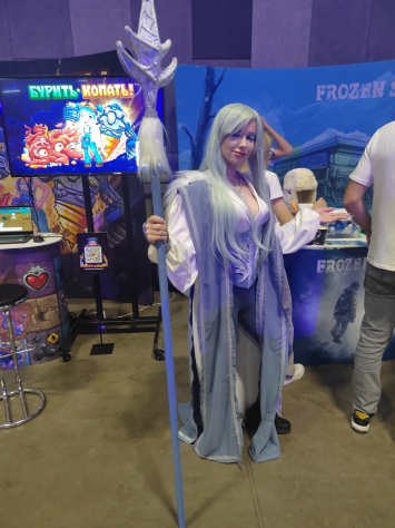 На стенде Frozen Ship, симулятора выживания на огромном вездеходе, движущемся сквозь замерзающий мир, была косплеерша в весьма фэнтезийном образе. Оказалось, что на поздних стадиях игры «кораблю снежной пустыни» действительно встретится некий культ, который будет возглавлять этакая королева снегов с мистическими силами.