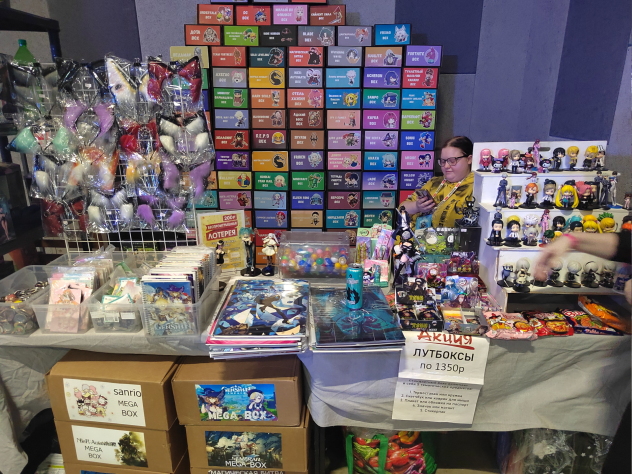 Для желающих унести с «Игропрома» не только тонны впечатлений, но и что-то материальное была устроена «Торговая аллея». Там в основном были фигурки, значки, подушки и прочие сувениры авторской работы и по известным персонажам.