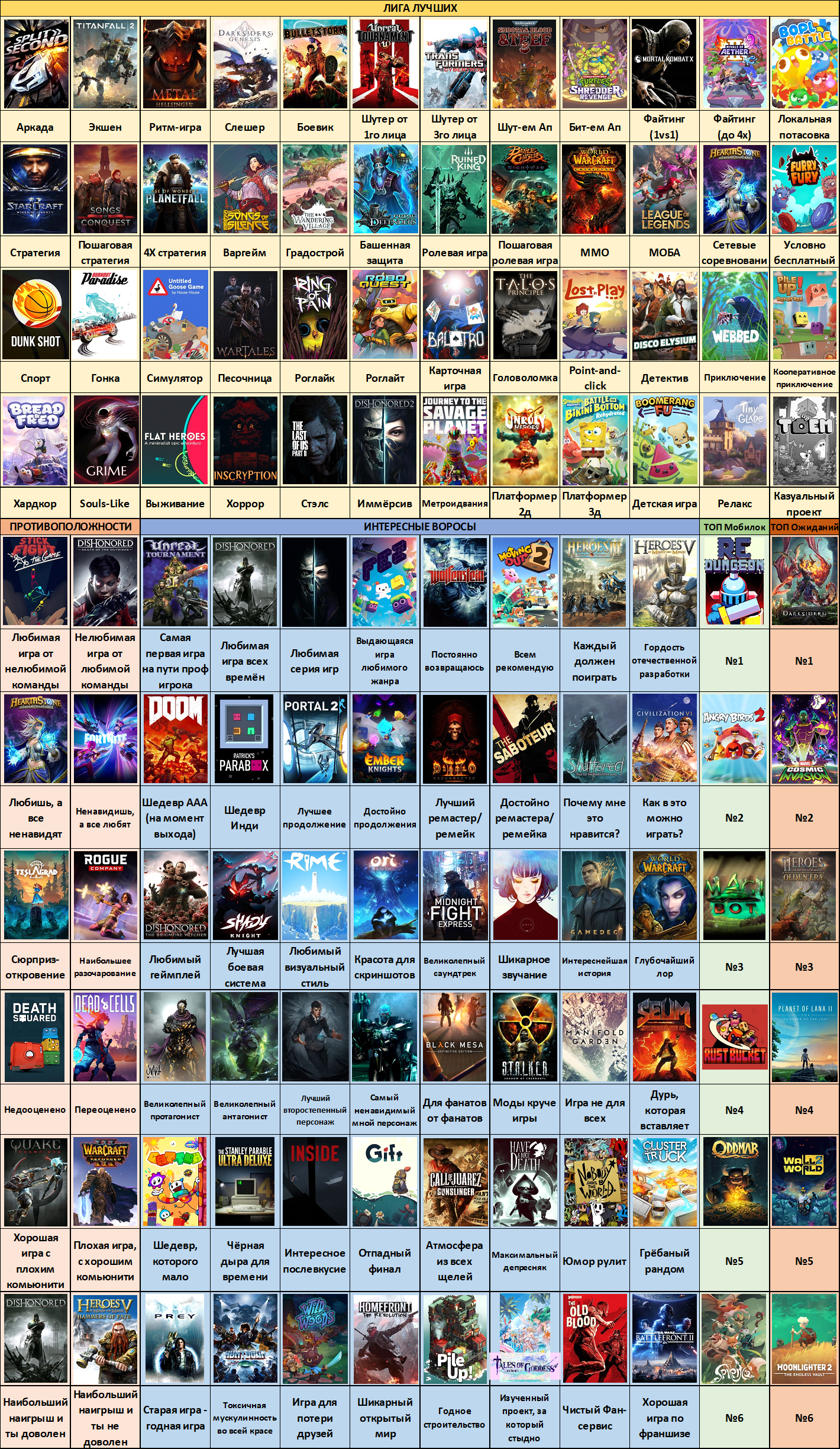 Раз меня упомянул товарищ FlexFox, то я обязан тоже показать свою таблицу. Также хотелось бы поблагодарить автора блога за то, что вписал меня в свою историю. Я рад, что смог когда-то открыть для тебя Stopgame, а ты, в свою очередь, целый год открывал для всех нас разные игровые миры своими блогами. Это дорогого стоит! Удачи тебе в дальнейшем!
