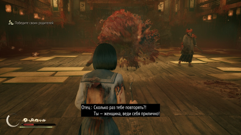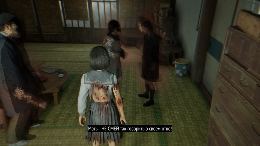 Вот тут и проявляется специфика, драма и борьба Silent Hill f. История Анджелы - это ужас насилия со стороны брата и отца при молчаливом согласии матери. История Анджелы - это борьба отчаяния, боли и ненависти с комплексом вины, который ей вбила мать. Отец сделал тебе больно? Сама и виновата, будь послушной. Боль - это твоя вина, твоя и ничья больше! Не смей обвинять отца! Ты плохая и хуже тебя нет!