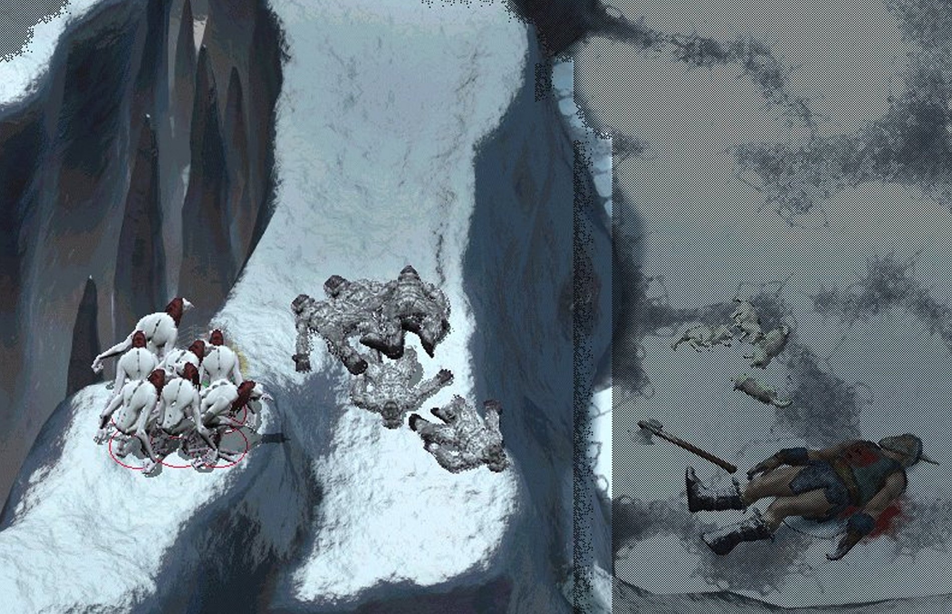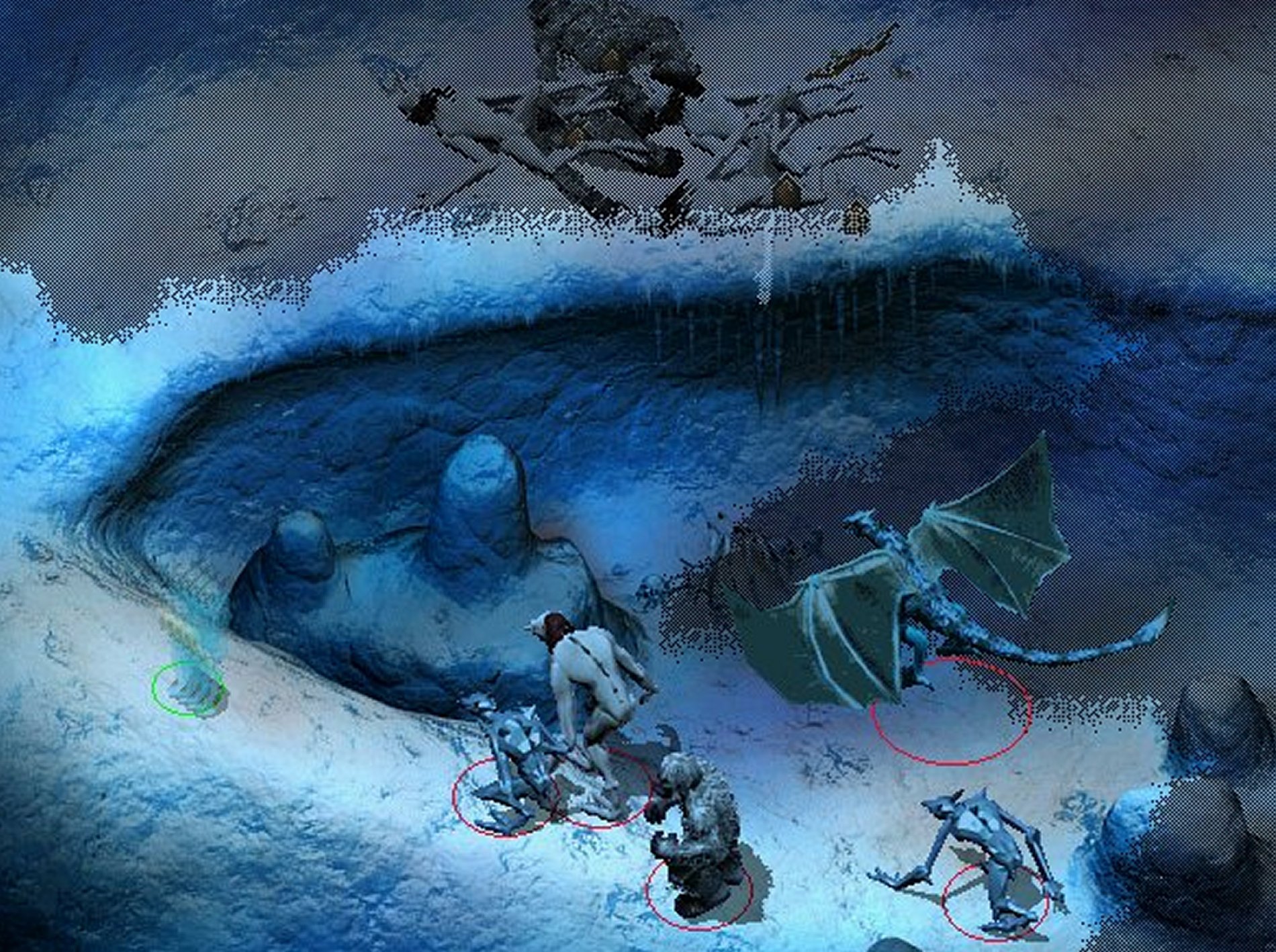 Ледяные саламандры – ерунда, справился даже без помощи скелетов. Набрёл на печальную сцену – место чьей-то последней стоянки. Север не прощает ошибок… Пошарил в чужом рюкзаке – мёртвым снаряжение ни к чему – и обнаружил бутылки с огненным зельем.