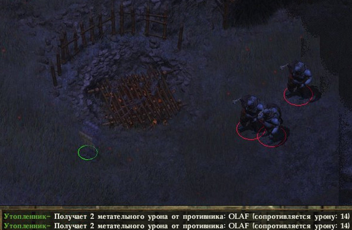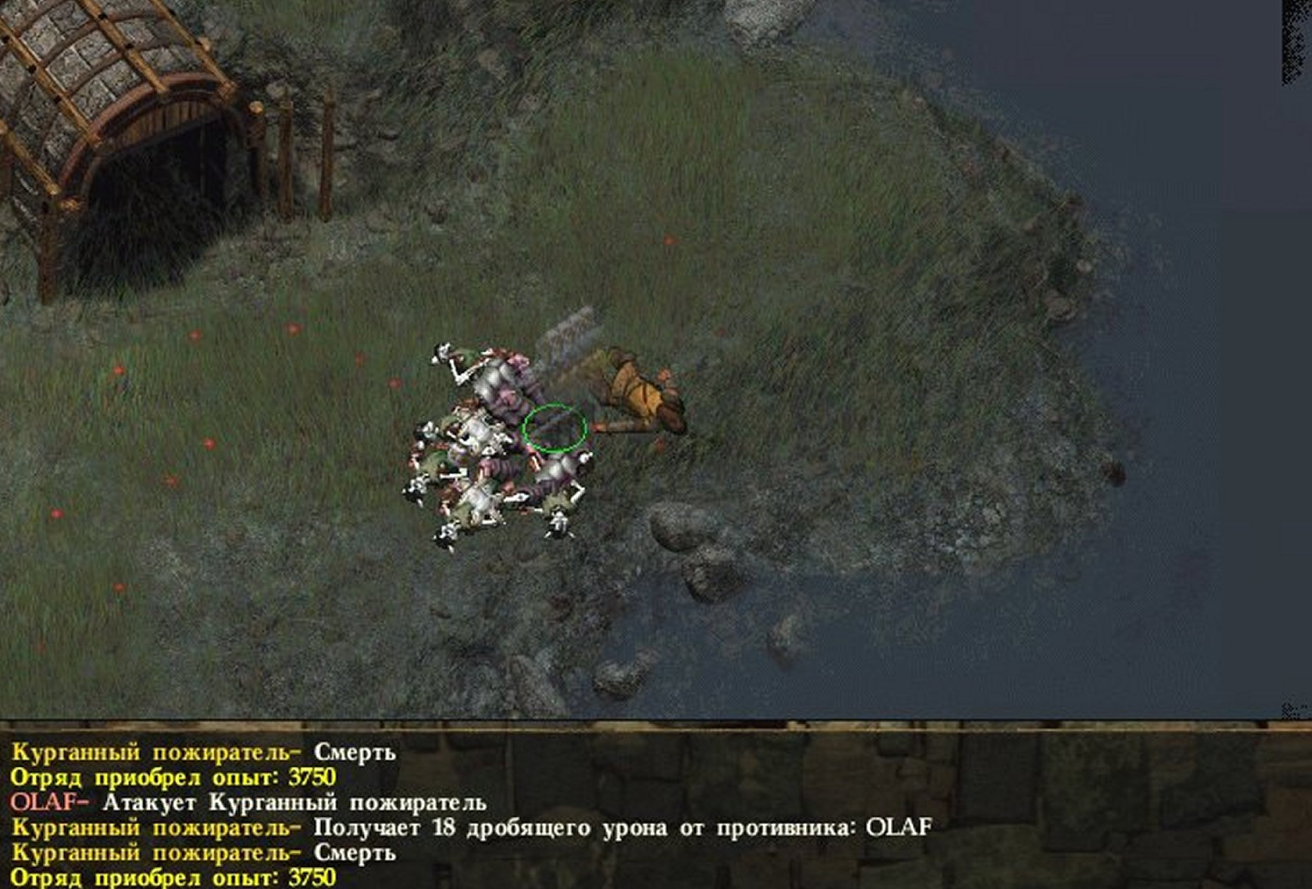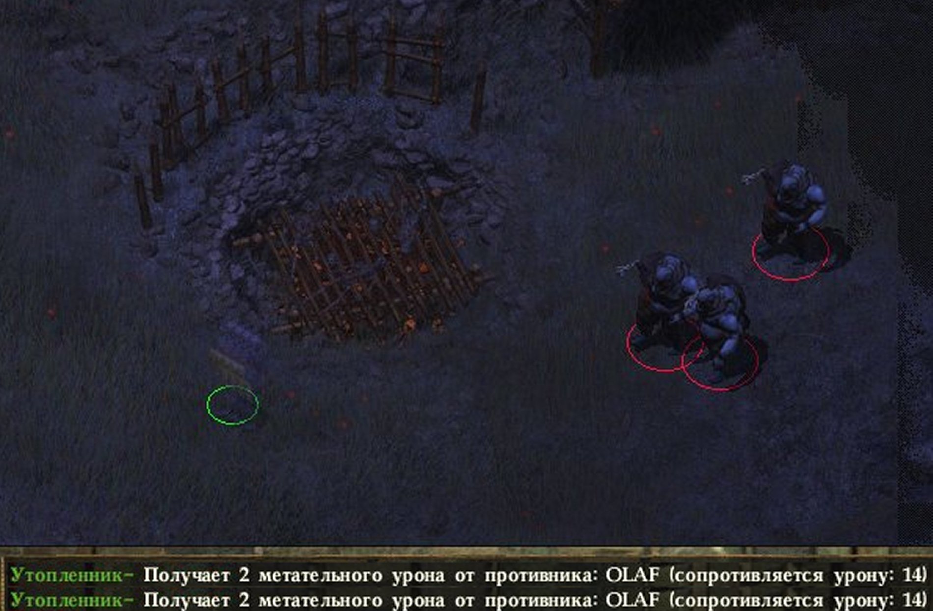 В отдельной башне обнаружился маг, согласившийся поторговать. Увы, выбор невелик – купил только «Ремень Крови Огра», позволяющий вызывать пять огров и обладающий функцией регенерации. (Да только регенерация невероятно слаба, и носить этот ремень постоянно не имеет смысла.) Что самое плохое – похоже, ни у кого нет лечебных зелий. Ну ладно, я воин/клирик, могу лечить себя сам, а остальные-то как? В раздумьях поднялся на пригорок и остановился в замешательстве: ко мне ковыляли раздутые туши, буквально пузыри на ножках – Утопленники.