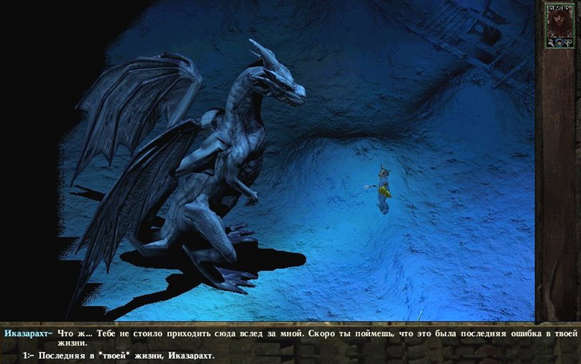 Снова сражаюсь с сахуагинами – до тех пор, пока не падёт последний. Теперь можно заняться Иказарахт! К моему огромному облегчению, она то ли не умела лечить себя подобно Фиркраагу, то ли не стала этого делать из лишней самоуверенности – большая ошибка! Пару раз, благодаря сапогам скорости, удавалось опередить её настолько, что успевал наложить на себя «Великий Щит Латандера». И наконец – победа! О чёрт, ещё нет: дух дракона перенёсся в филактерию и принялся вызывать монстров на подмогу. Щит Латандера, призыв мощи – вот теперь победа. Странно, что мёртвый дракон не оставил после себя сокровищ. Хотя, если подумать, ничего странного – где бы она их хранила? В желудке, что ли?