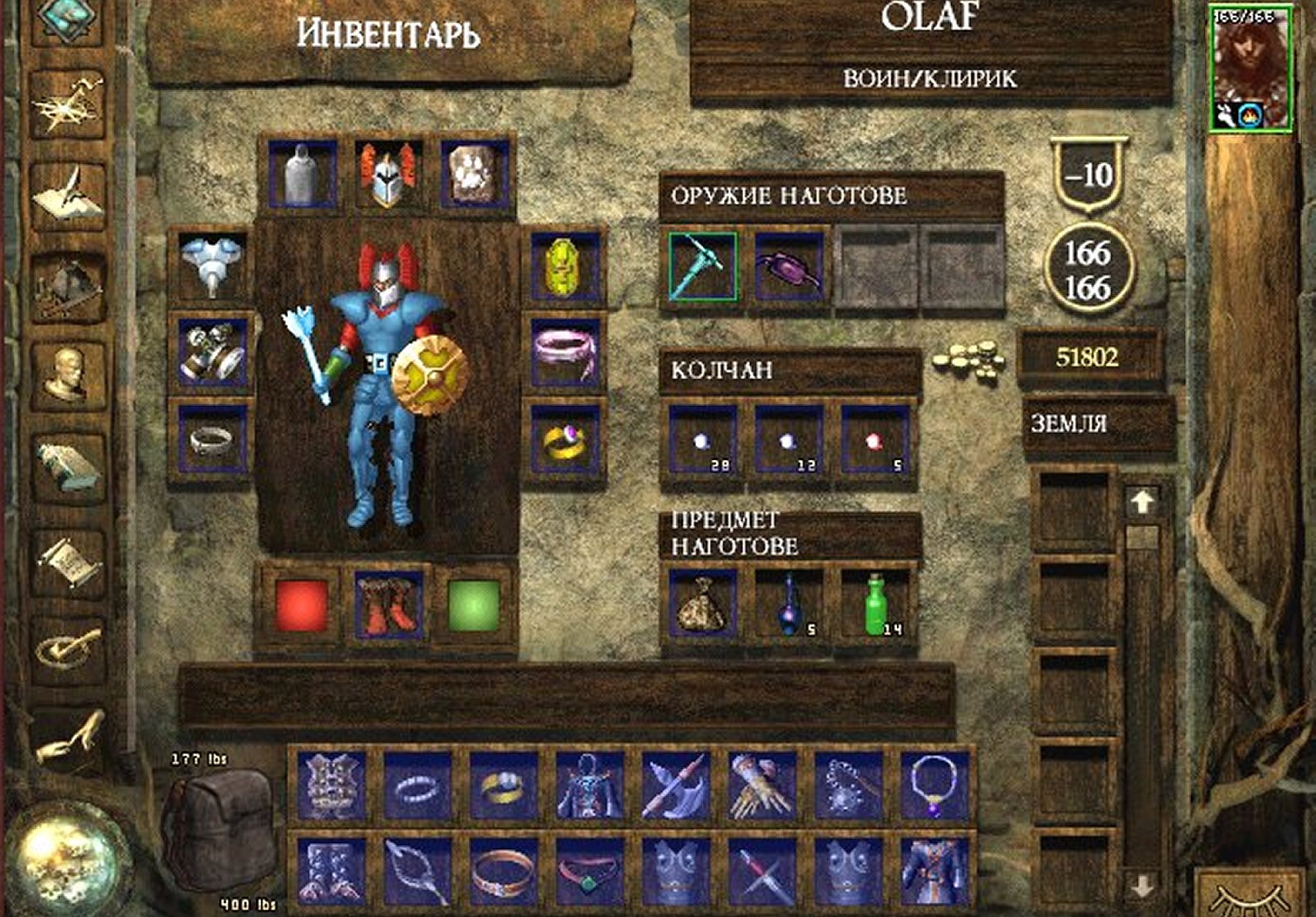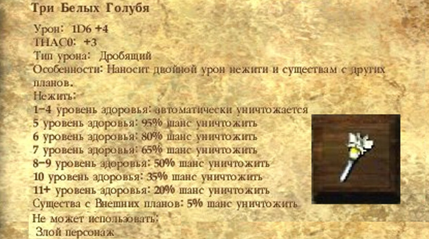 Новый неизвестный враг; уж не владеет ли магией? Нет, но бьёт с чудовищной силой! К чёрту ближний бой, где там моя праща? Отбежал, зарядил камень, метнул: раздался звук, словно по кожаному мешку, набитому мокрой травой, хлопнули ладонью – а монстр как шёл, так и идёт. Второй камень, третий – без толка. Отступать больше некуда, того и глади – нарвёшься на ещё один отряд; применил «Призыв Святой Силы» и пошёл в рукопашную. Ух ты, я и забыл, что с ростом клирика в уровнях это заклинание становится более мощным! Теперь сила, ловкость и телосложение повышаются до двадцати двух – здорово! Одержал-таки победу, но пришлось плыть на материк, чтобы поспать: закончились все заклинания.