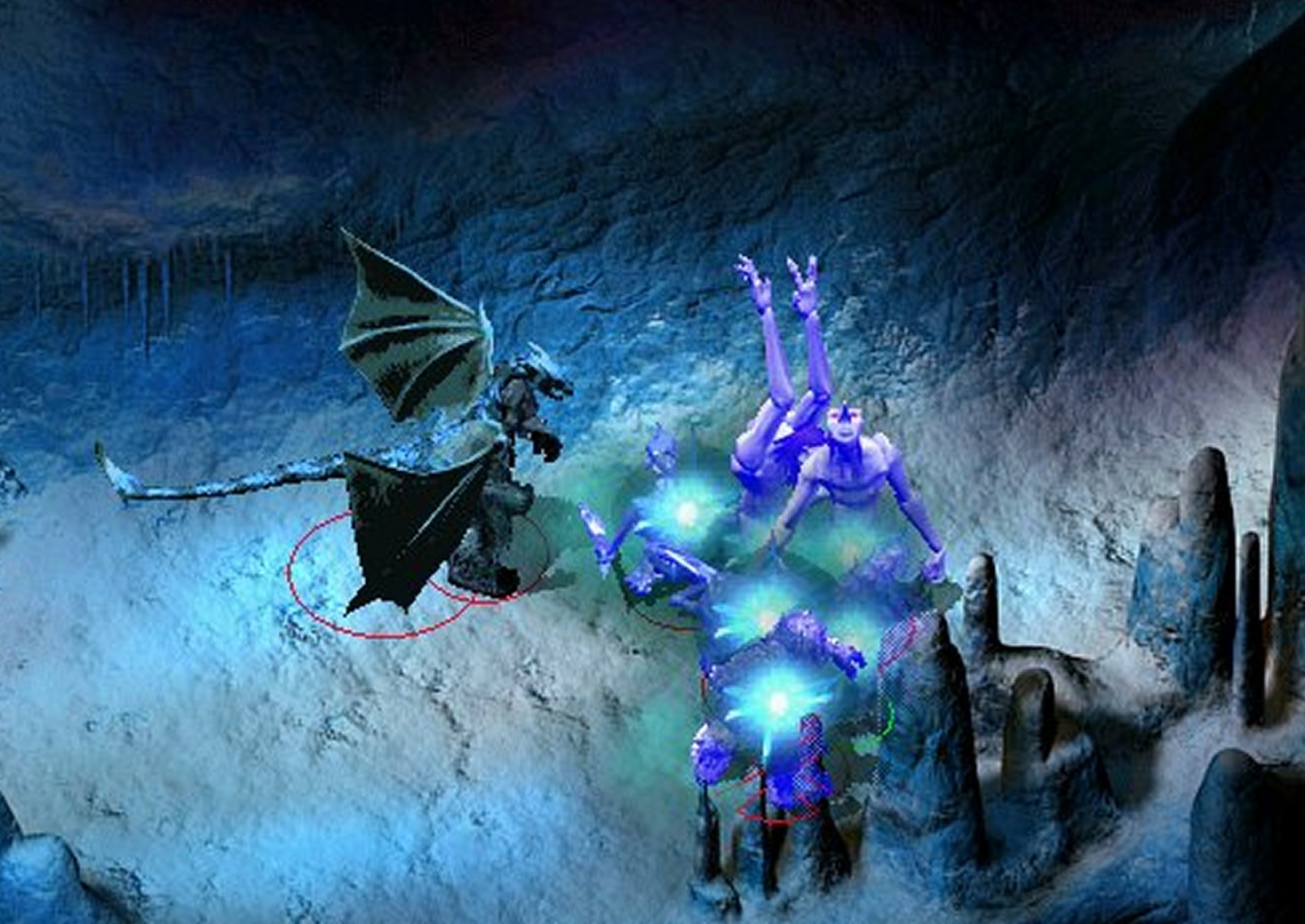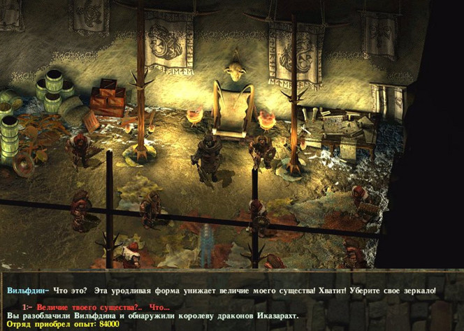 Призвал огров и приказал направить все удары на свиту дракона: сахуагинов. Бьют они не больно, но мешают своей магией. Огры пали, и дракон переключается на меня; пора бежать. Дверь заперта, но свободного пространства, к счастью много. Гораздо больше, чем во владениях Фиркраага или Такслл'ссиллиа. Бегу в дальний угол, кастую «Исцеление» и «Призыв Святой Мощи», на остальные заклинания не хватит времени.