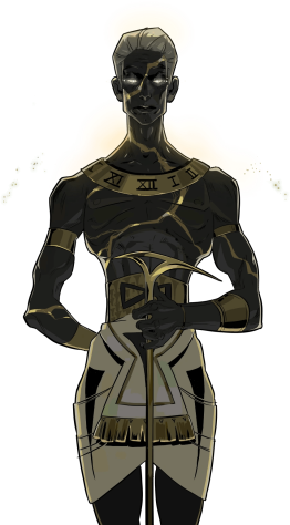 Так что из прошлого Кроносу достались египетские атрибуты и шрамы. А вот исполнение его шрамов, к примеру, ссылается на японское искусство склеивания керамики золотом, именуемое «Кингуци». Можно сказать, что это будущее, ведь зародилось оно только в XV веке.