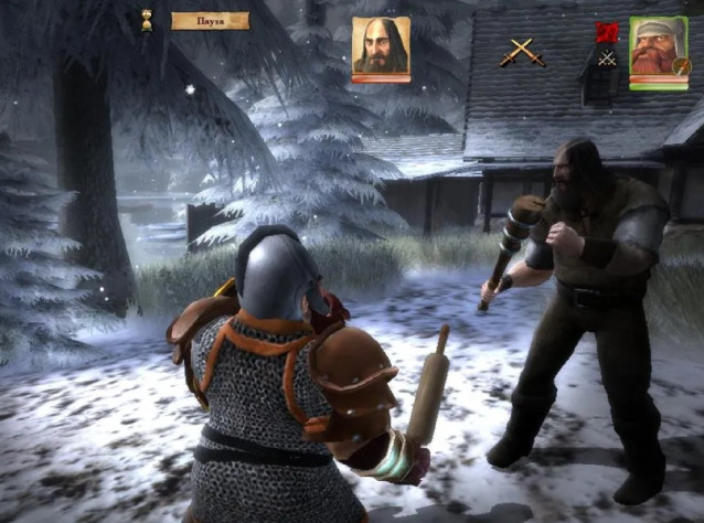 Мда, конь-переросток…С косой… Эй-эй, ты куда?! Это не я вызывал тебя на бой, это вон тот здоровый мужик без шлема, с круглым щитом! Не слышит, и несётся ко мне, да ещё не один, а со свитой! Пора вставлять камни в обелиск! Опять рано!? Да ты что делаешь, ярл?! Мне уже три раны нанесли, я едва живой и что есть духу бегаю кругами вокруг обелиска, а он бегает за мной, вместо того, чтобы рубить врага, и орёт: «Не трогай обелиск без моей команды!».