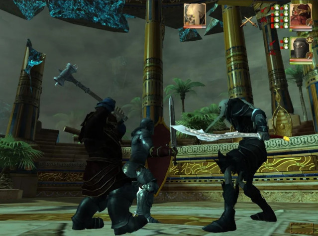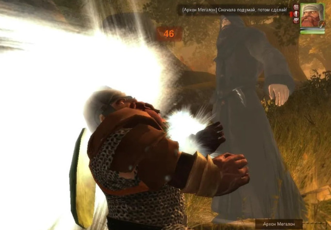 Уф, услышал. Отбегу я подальше, пусть этот любитель острых ощущений сам разбирается со своим противником. На этот раз повезло, Кацак напал именно на Филеассона; и – смотрите-ка! – суровый воин через несколько секунд закричал: «Активируй обелиск!». Несладко? Сейчас помогу! Но что же выбрать? Я заблокировал проход вражеских подкреплений, ослабил броню Кацака и вызвал на помощь эльфийских стражников. Последнее сделал напрасно – очень быстро все эльфы были убиты. Ладно, займусь-ка я огром, а «конём» пусть занимается тот, кто вызвал его на бой.